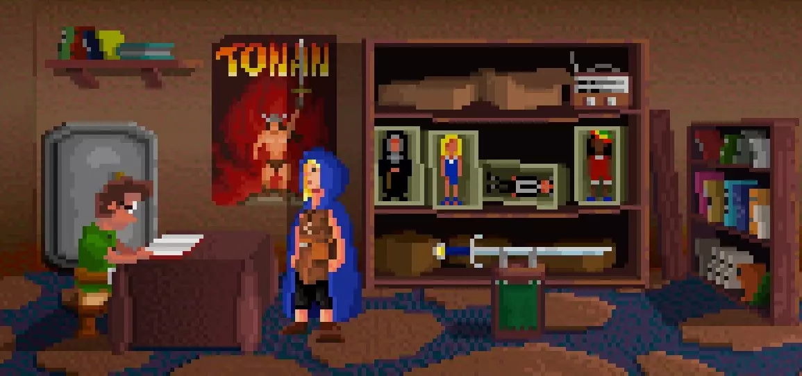 首先先完成一个成就,使用架子右上角的收音机来获得TONAN THE BARBARIAN。