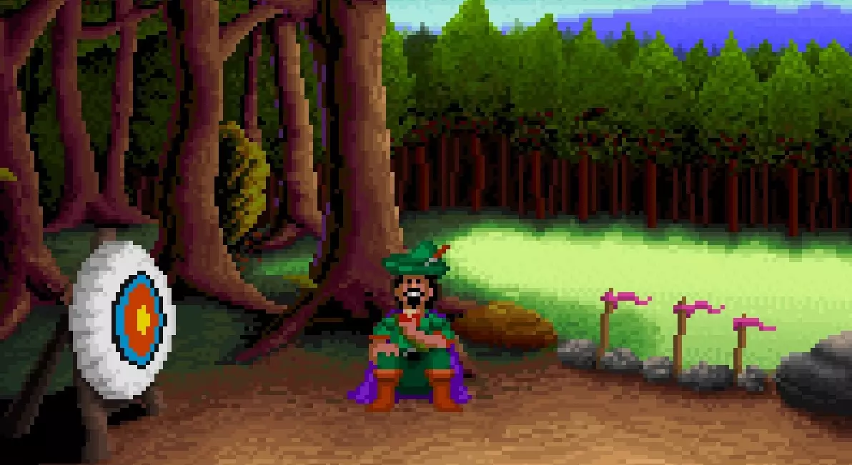 与弓箭手交谈,向他发起决斗。 拿起一支箭,在物品栏中将其与弓组合,射出后你会获得一张会员卡。 返回地图并选择森林出口。 在这里,将玉米粒放在左侧黄色岩石上的残羹剩饭处,离开后会看到一只松鼠前来查看食物。当松鼠出现时,用你的吹箭筒对准它,即可获得【IT'S TIME TO SLEEP】成就。