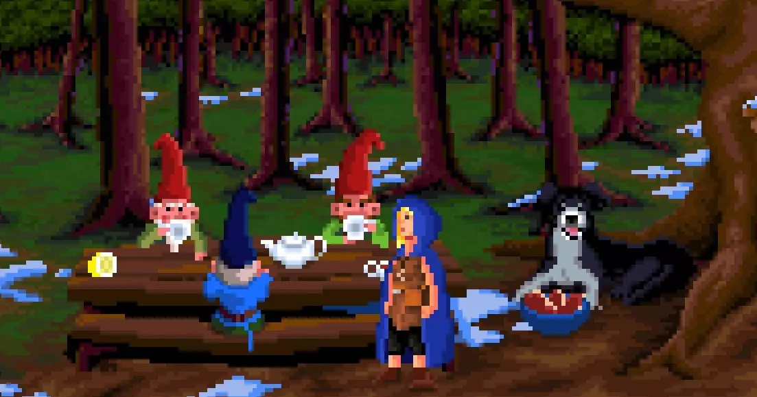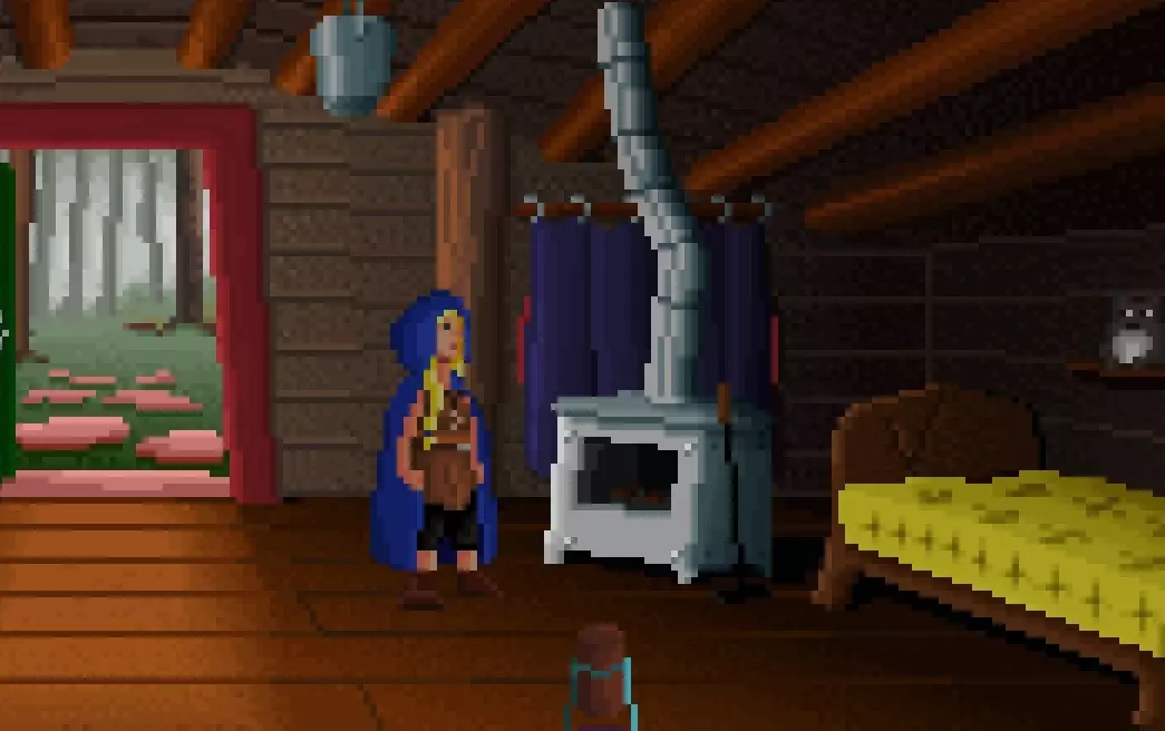 拿起靠在柴火炉上的拨火棍,快速对水桶使用两次,让水洒在地板上。你会发现一块【干燥木板】,用拨火棍点击它,夺取它藏着的木手杖。 试着拿起左侧书架顶部的粉色钱箱,会有一枚硬币滚落出来,现在用拨火棍伸到床底下,拿到银币。 前往室外。 用木手杖点击石圈前的地精,然后拉动木手杖打开一扇秘密门。这将解锁成就THESE GNOMES ARE NOT WHAT THEY SEEM。