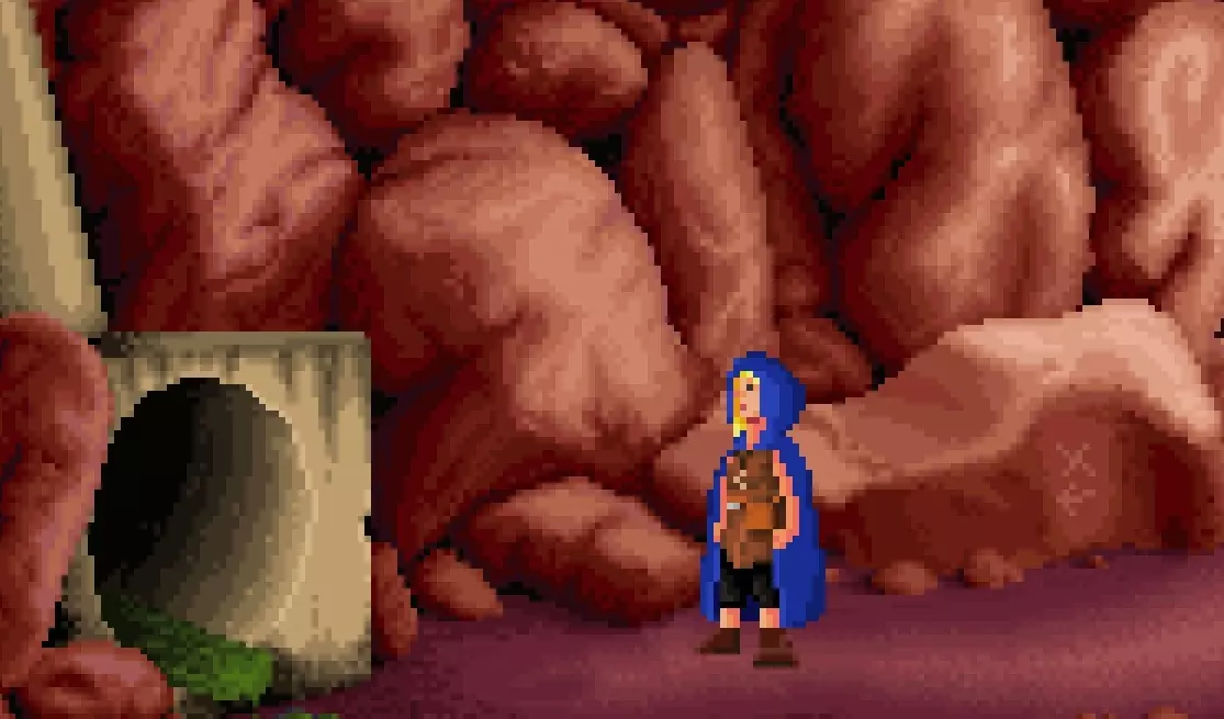 拿起你右侧的木箱,获取一只蟾蜍。 从物品栏中取出生肉,将其放在地精头上戴着的漏斗上。 爬下梯子。 向右离开,在白蚁丘前的平坦岩石上放置一些生肉,然后拿起漏斗。 向右走三次,到达瓦斯矿。 在物品栏中将蟾蜍和漏斗组合,然后将带漏斗的蟾蜍用于黄色标志右侧的裂缝,制造出一只肿胀的蟾蜍,可怜的家伙…… 走到外面,然后向左离开三次,爬上梯子。 把你的糖晶交给地精。 走向木制升降机,乘坐它下去。