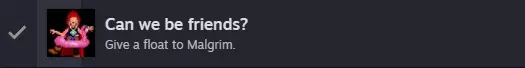 对话过程中,塔楼会发生震动,之后你将重新获得控制权。请迅速使用背包中的漂浮道具对马尔格林使用,以获取最后一个可能错过的成就【CAN WE BE FRIENDS?】。