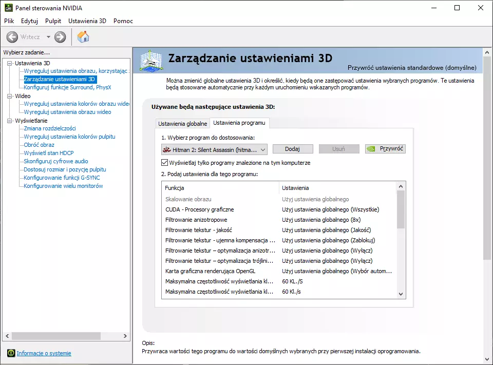 描述 以下指南可让您体验《杀手2:沉默刺客》的波兰语未审查版本。该本地化包含影院级字幕,属于官方翻译。 准备工作 确保已启用.NET Framework 3.5和DirectPlay支持。 按下Windows键,输入“启用或关闭Windows功能”。勾选以下两个选项: .NET Framework 3.5(包含.NET 2.0和3.0版本) 旧版组件 -> DirectPlay 点击确定以应用更改。 需下载内容 游戏1.01版本+分辨率修复补丁(默认1920x1080) 本地化安装 开始安装本地化前,请先打开游戏文件夹。操作方法为右键点击游戏标题,然后选择“属性...”然后依次点击本地文件、浏览... 接着将下载内容中的文件拖入并覆盖到游戏主文件夹中。 本波兰语本地化内容包含: - 游戏全部内容(主菜单、设置、制作人员名单、游戏内提示、任务列表、任务简报、武器列表、对话) - 配置文件(config.exe) 【Hitman2.ini 文件配置(可选)】 若你的显示器分辨率非1920x1080,可在此文件中修改。用记事本打开该文件,找到“Resolution 1920x1080”这一行,将1920x1080修改为你系统当前设置的分辨率,保存更改后关闭文件即可。游戏问题与帧率限制 游戏中的高帧率可能会导致以下问题: 慢动作效果 角色移动卡顿 过场动画(cutscenes)问题 敌人行为脚本运行错误(例如,敌人会站着不动而不是在周围巡逻等) 为避免这些问题,你可以为游戏设置固定的帧率限制。安全值为60 fps。如果你使用NVIDIA显卡,可以非常简单地设置固定帧率限制。 右键点击桌面,选择NVIDIA控制面板。在左侧选择3D设置部分中的管理3D设置。 在右侧点击程序设置选项卡。接下来选择程序【杀手2:沉默刺客】,如果没有该程序则需要添加。点击添加并选择指向可执行文件hitman2.exe的路径。 在下方窗口中找到以下两个功能,将它们的值更改为60帧/秒: - 最大帧率 - 应用在后台时的最大帧率 点击应用以保存更改。关闭控制面板。 祝你玩得愉快! 重返杀手系列,或者如果你还没有机会游玩,那就重新认识它吧。祝你游戏愉快! 更新日志 2021年11月26日 - 指南第一版 2023年10月28日 - 全面重写指南,以简化安装过程。测试了汉化补丁的安装。 截图
