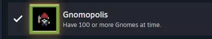 Gnomopoly、Landlord和Gnomopolis这三个成就在经济收入提升后,基本就没什么难度了。注意!Gnomopoly的成就是在按下右下角的按钮后才结算的,光金币数字达到数量不够,要攒钱;Landlord是硬性需求没什么好说的;Gnomopolis也可以靠地精法师的专属遗物召唤传送门(Summoning Portal)达成,就不需要房屋来提供人口支持了(作者改成需要人口支持了),但是实现速度比较慢。