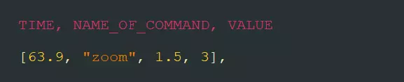 缩放命令可控制镜头放大和缩小!其工作方式如下: [时间, "zoom", 缩放值, 缩放时间] - 若缩放值为1,即为镜头基础缩放比例。 - 若缩放值大于1,镜头将放大。 - 若缩放值小于1,镜头将缩小。 - 缩放时间是镜头达到缩放值所需的时长。 在此示例中,镜头将在3秒内放大至1.5倍。 黑屏