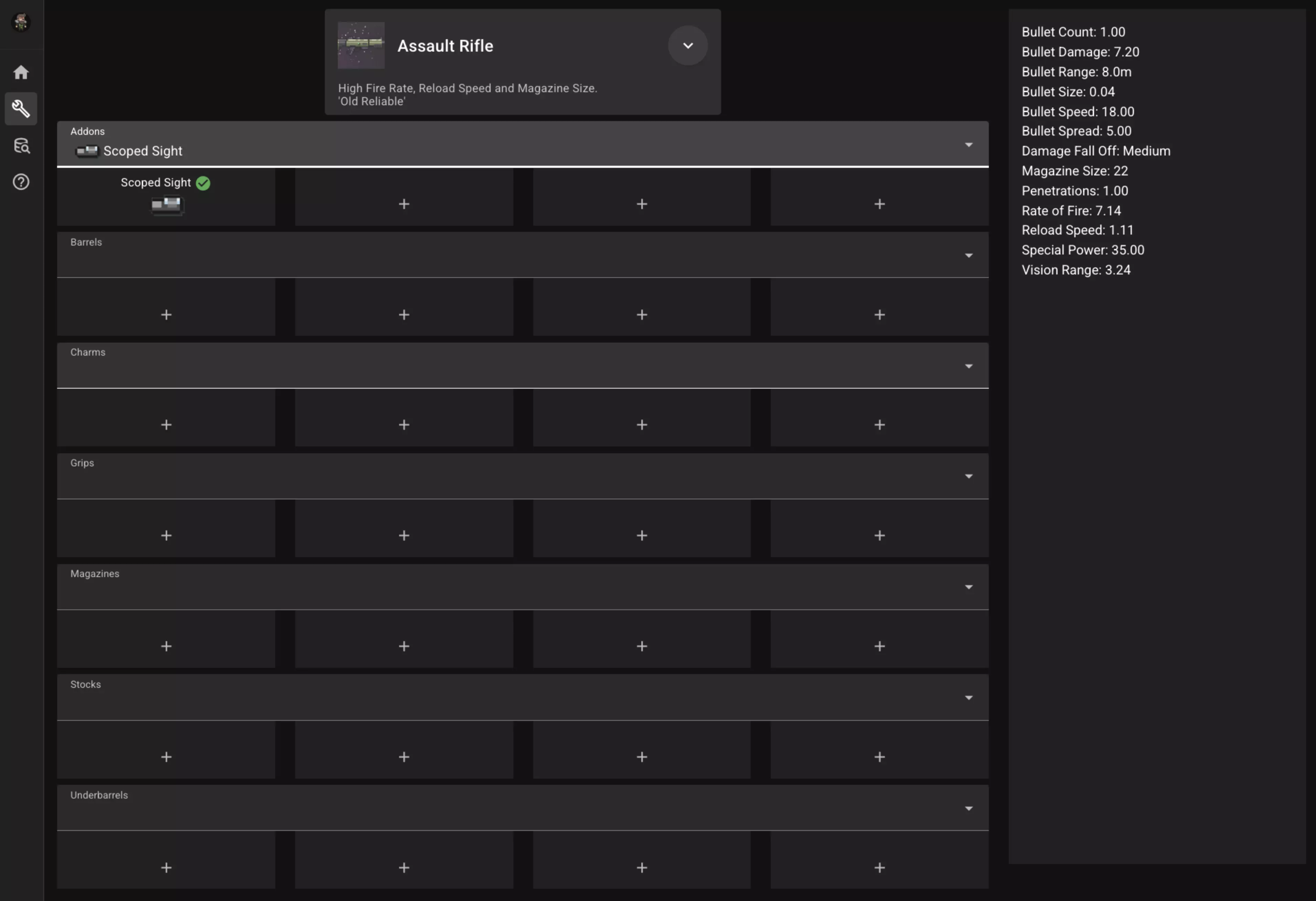 每添加一个强化部件,属性都会重新计算并显示在右侧。添加完所有想要的强化部件后,你就能看到该特定枪械的最终属性了。 (特殊能力属性取决于枪械在特定时间的等级。因此,本页面显示的枪械等级仅为你已选择的强化部件数量。例如,在下图中,用于计算特殊能力的等级将等同于枪械处于22级时的状态。)