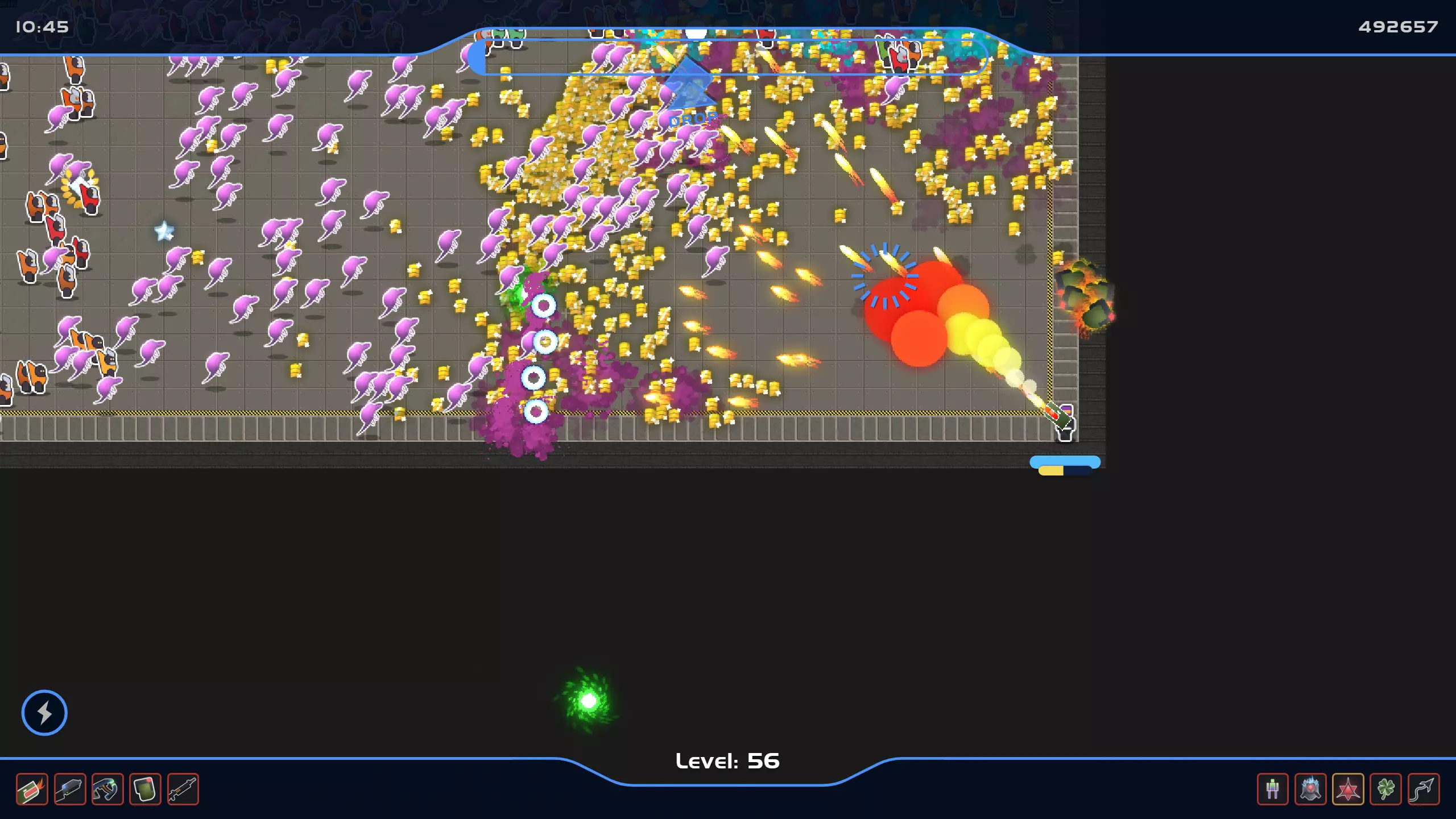 本指南将介绍获取成就Reclaimer和Bloodbath的步骤 简介 在挑战成就Reclaimer和Bloodbath之前,你可能需要先解锁自定义模式,这会让获取这些成就变得更简单。你可以通过在任意难度下至少完成所有任务一次来解锁自定义模式。你或许在游玩过程中就能获得成就Reclaimer,但我从未成功过,因此才有了本指南。 Reclaimer 先来说成就Reclaimer,因为Bloodbath比较耗时,可以放在完成其他所有成就之后再去挑战。 在主菜单的升级菜单中,我在完成这个成就时所有属性都已达到满级。你不需要将这些属性都升到满级,但这样做确实会更轻松。进入游戏后,将鼠标悬停在【秋之柱号】上,选择传奇或神话难度(需完成所有难度下的所有任务才能解锁)。 任意角色均可,但部分角色初始会携带额外的特长,可能会有所帮助。 完成上述操作后,点击【自定义游戏】并选择以下选项: - 自定义游戏模式:开启 - 武器数量:5 - 特长数量:5 - 护盾容量:200% - 玩家速度:200% - 自动选择升级:关闭 - 无尽模式:开启 - 无尽能量循环:+60%(推测需要设为+60%,但游戏存在 bug,点击确认后会重置为+30%) 完成所有选项设置后,点击确认按钮即可准备就绪。 你也可以在设置中将游戏速度调整为 300% 以加快进程,不过要注意避免在大量敌人的围攻下损失过多生命值。点击“秋之柱号”任务开始游戏,像往常一样游玩并生存下去。拾取敌人掉落的经验代币,升级时选择你喜欢的武器或技能。在游玩过程中,你还要留意随机出现的掉落物。它看起来像一个徽章,能让你立即升级,并可以选择或升级一项技能或武器。在这个任务中,这类掉落物生成速度快且频繁,你应该能在10分钟内完成。 你需要将选择的所有5个技能和武器都升到满级。有些技能或武器的满级是红色,有些则是橙色,比如“放逐者”技能。在撰写本文时,我选择了这个技能并成功解锁了成就。成就会在你选择最后一次升级后解锁。