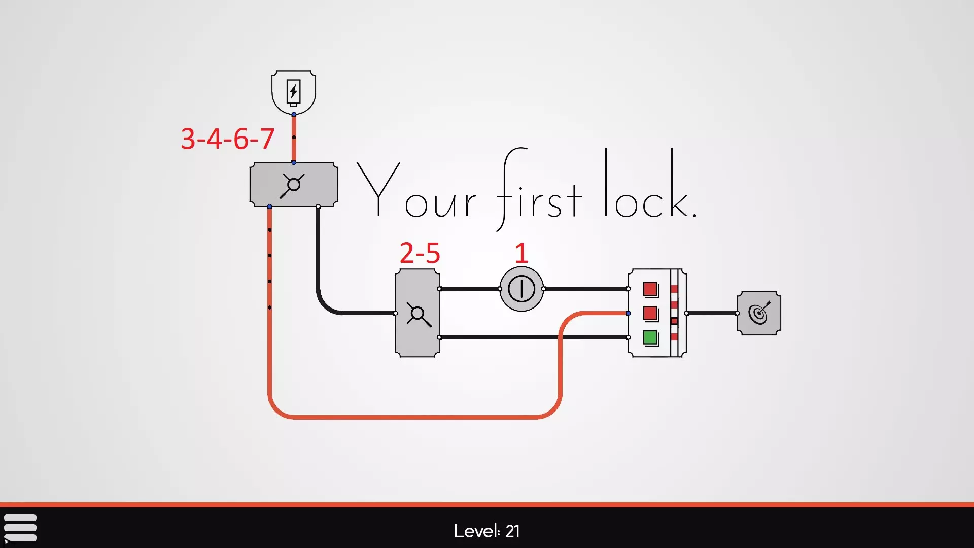 Wannabe Hacker 完成第一个锁。 重复上述操作,但这次加载第29关【初次挑战】。同样通关该关卡。 解决方法: