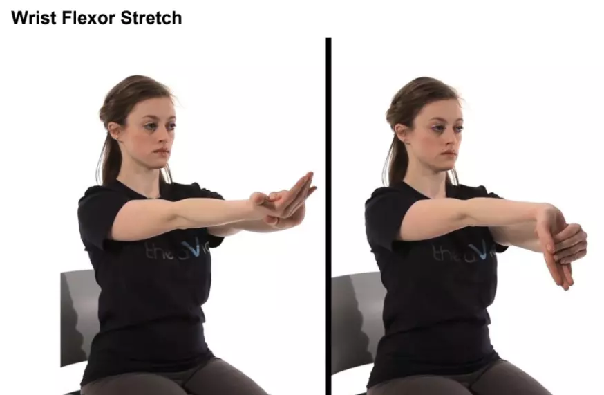 手腕拉伸 长时间让手腕压在键盘上或长时间打字可能会导致手腕紧张。这两个简单的拉伸练习旨在锻炼手腕的屈肌和伸肌。 做法:伸出右手,掌心向上。弯曲手腕,让指尖向下。用左手将手指向后拉,加深拉伸,直到感觉到前臂有拉伸感。保持这个姿势15-30秒,然后换另一边重复。手掌朝下、手指向上弯曲,重复这个练习。