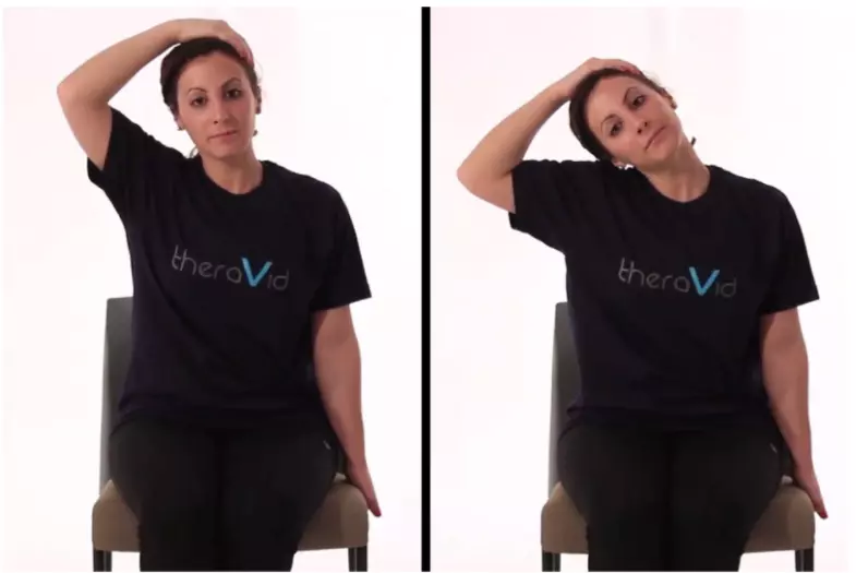 现在,当你调整好坐姿后,就可以尝试以下七个简单的坐姿拉伸练习了。 胸部和肩部拉伸 如果你在工作时容易含胸驼背,这是最适合你的练习之一。该练习针对胸部肌肉,有助于打开胸腔。 做法:将双手伸到背后并交叉手指。开始向上抬起双手,直到感觉到胸部有拉伸感。保持这个姿势15-30秒并放松。 颈部拉伸 许多人在伏案工作时会把头向前倾向电脑,这会给颈部带来额外压力。如果你经常感到头痛或上背部紧张,颈部拉伸可能会有所帮助。 做法:将右手向下放并抓住椅子侧面,将头向左倾斜,感受颈部侧面的轻微拉伸。保持这个姿势15-30秒,然后换另一边重复。