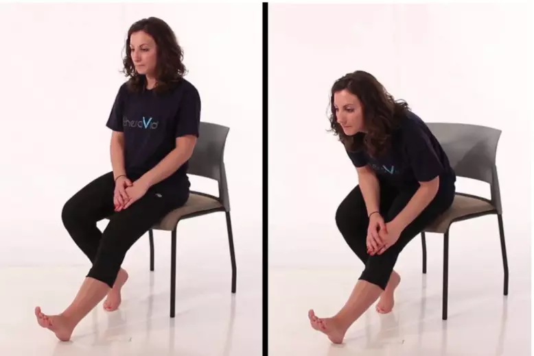 小腿肌腱拉伸 缺乏规律活动会使小腿肌腱迅速缩短。这项简单的练习有助于缓解腿部不适,保持小腿肌腱放松。 做法:伸直右腿,左腿平放地面。坐直,头部与脊柱保持一条直线,开始向前弯曲身体,尝试用右手触碰到右脚脚趾。如果您的椅子会滑动,请锁定轮子以防止向后滚动。保持这个姿势15-30秒,然后换另一边重复。