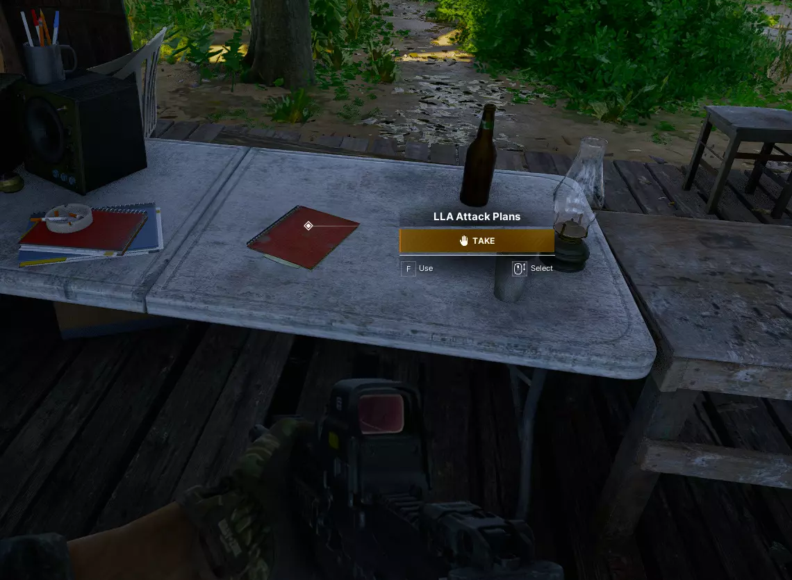 新邻居 在YBL-1区域的首个任务中,你需要寻找一份【计划】(红色小笔记本),其中包含对汉德谢克组织至关重要的信息。 - 找到位于YBL-1北方桥上的卡车(LLA检查站) - 找到通往纳里斯堡道路上的路障(LLA检查站) - 找到叛乱分子的隐藏营地(LLA前哨站) *卡车