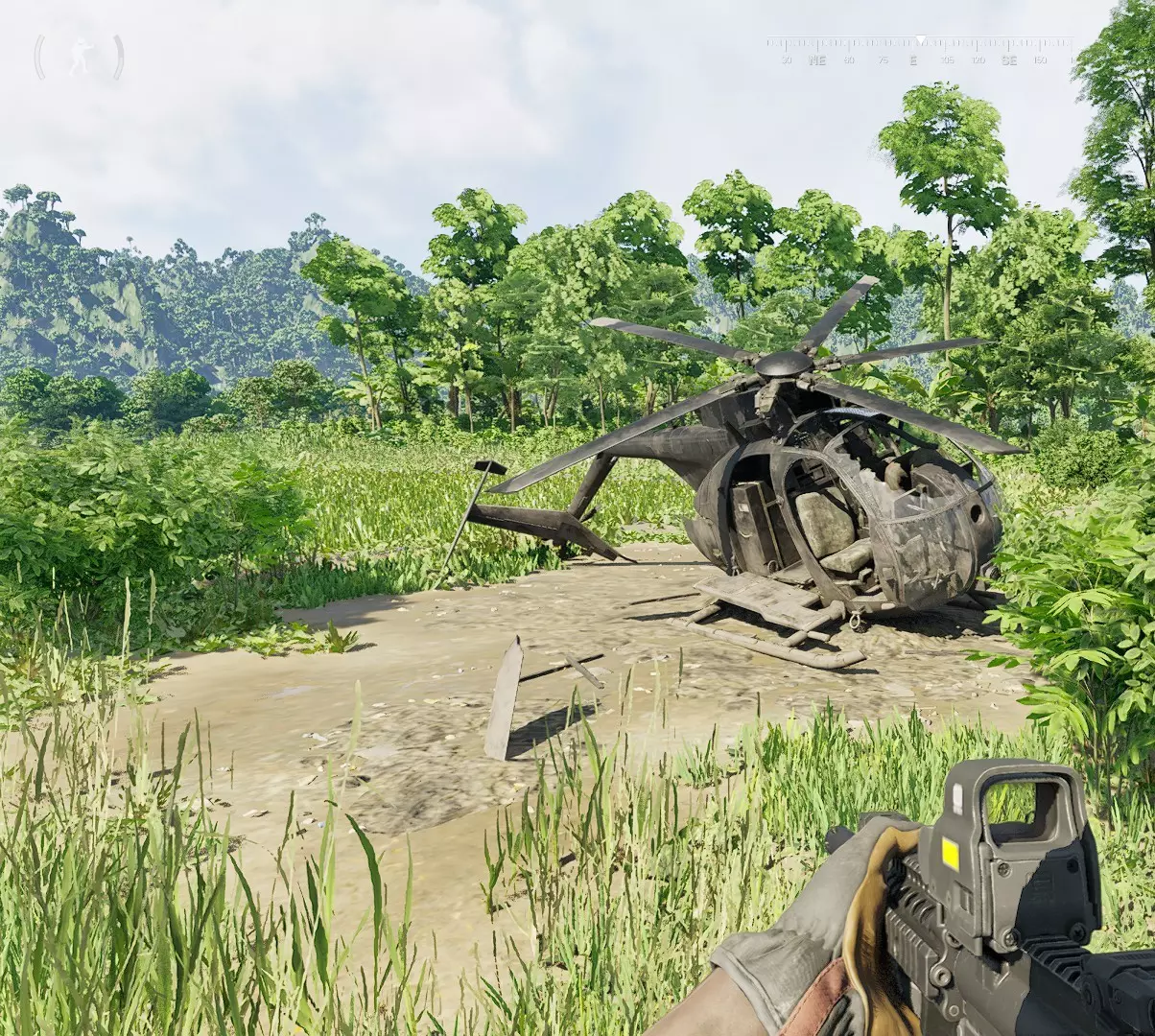 无路可走 在此任务中,你需要在班帕村西部找到一架PMC小队的直升机。