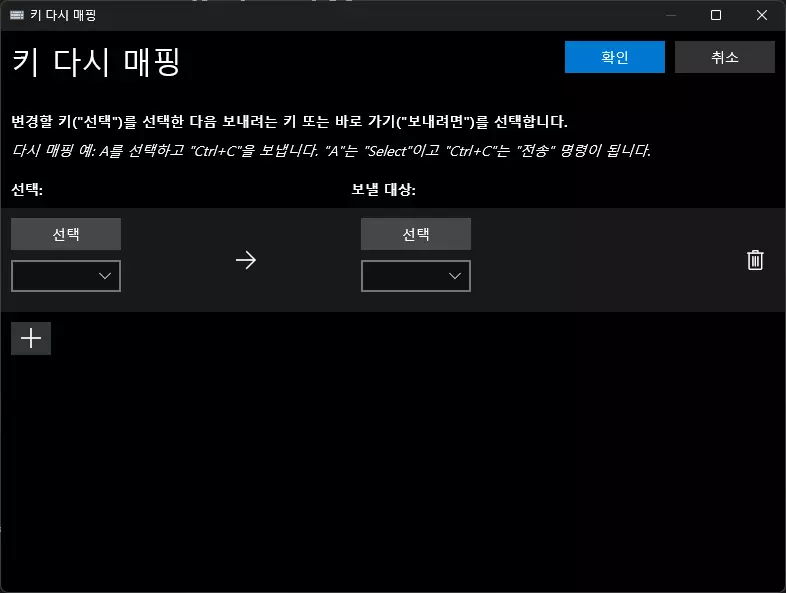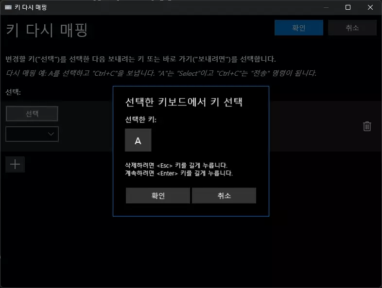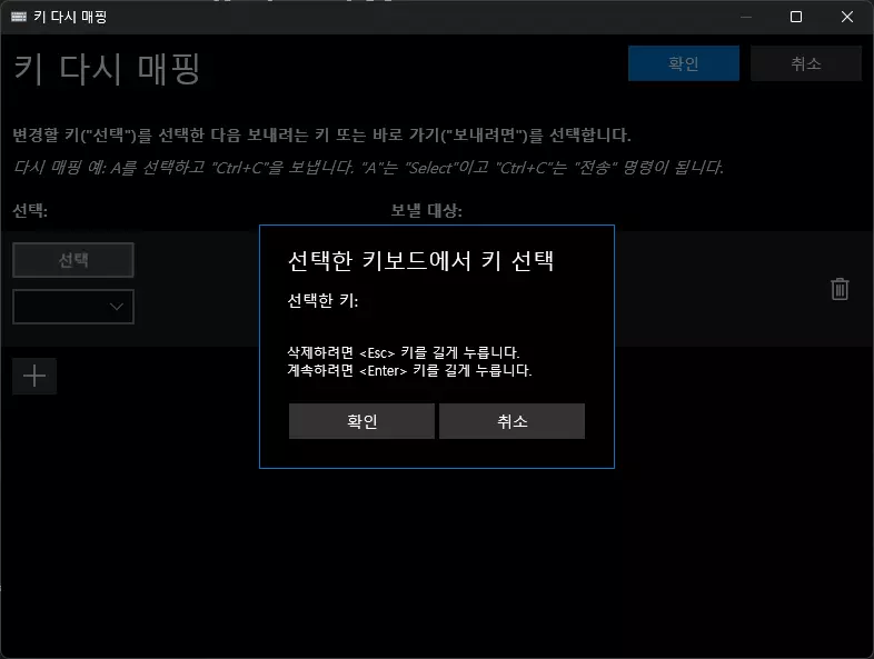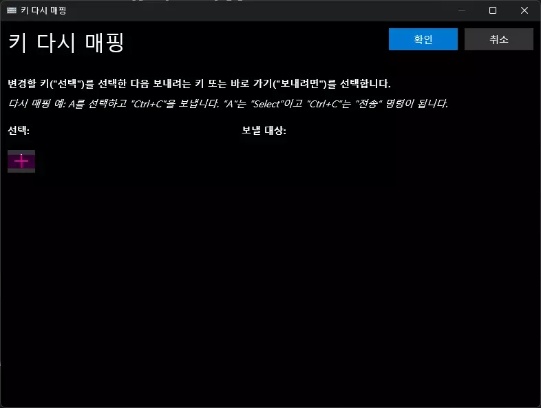 选择(左侧)表示要按下的按键,发送对象(右侧)表示按下时要映射的按键。点击【选择】按钮会弹出可指定按键的窗口。