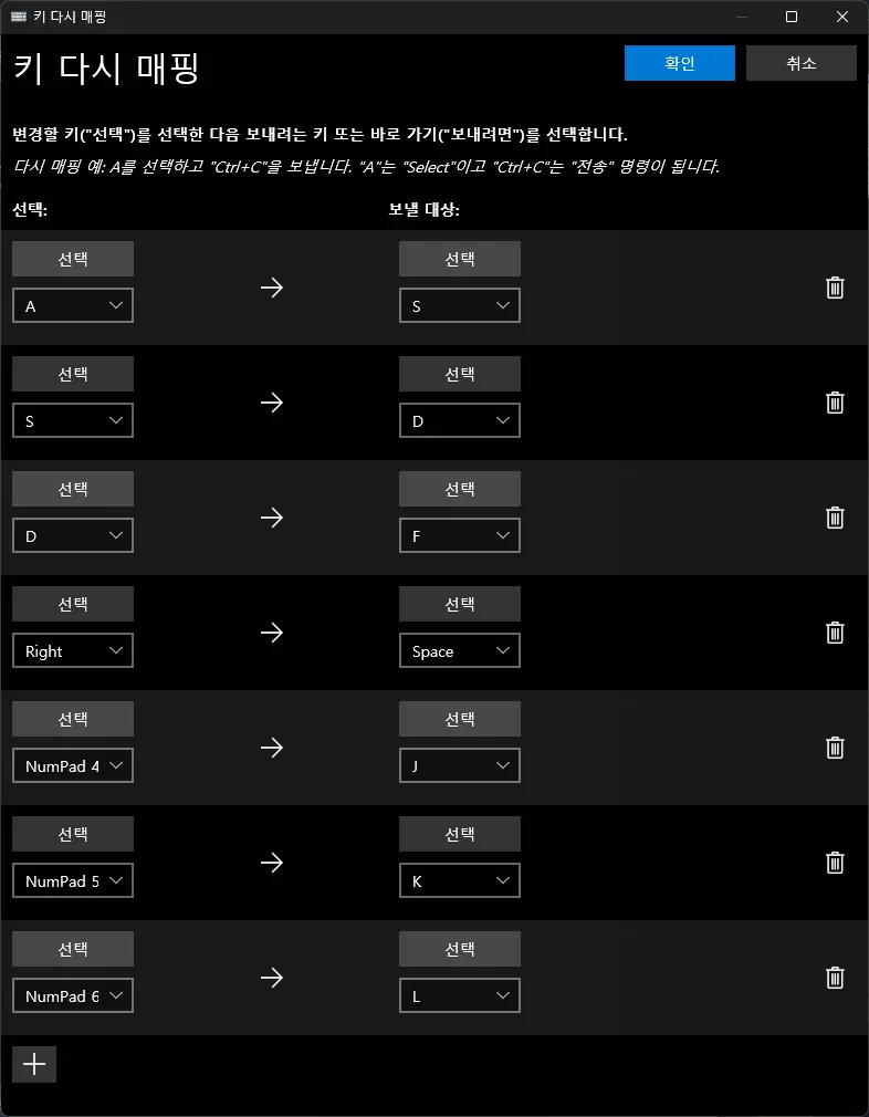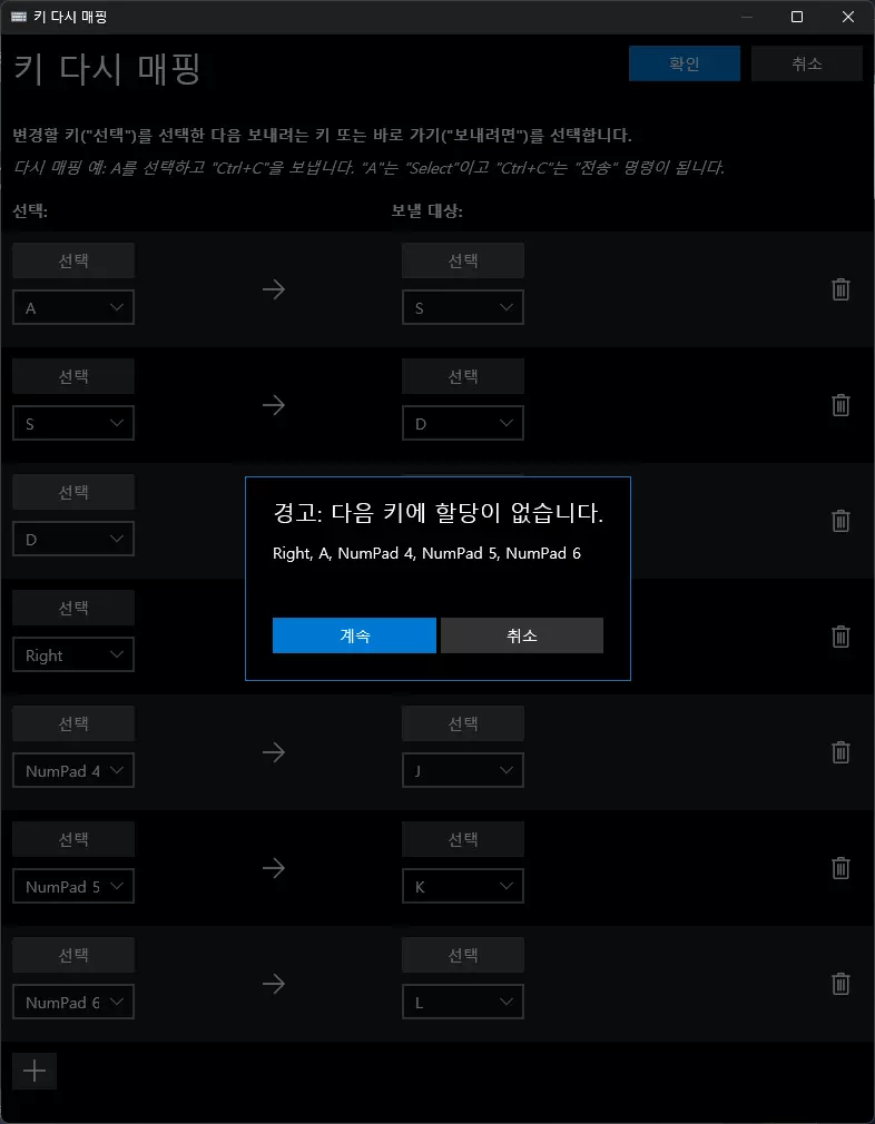 添加所有要映射的按键并点击【确认】按钮。 * 我将ASD space 456映射为SDF space JKL。