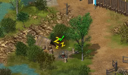 这是你在游戏首个场景的房屋之后遇到的第一个营地。 在这里休息需要消耗1个面包,并恢复10点生命值。 2. 老草药师附近的营地
