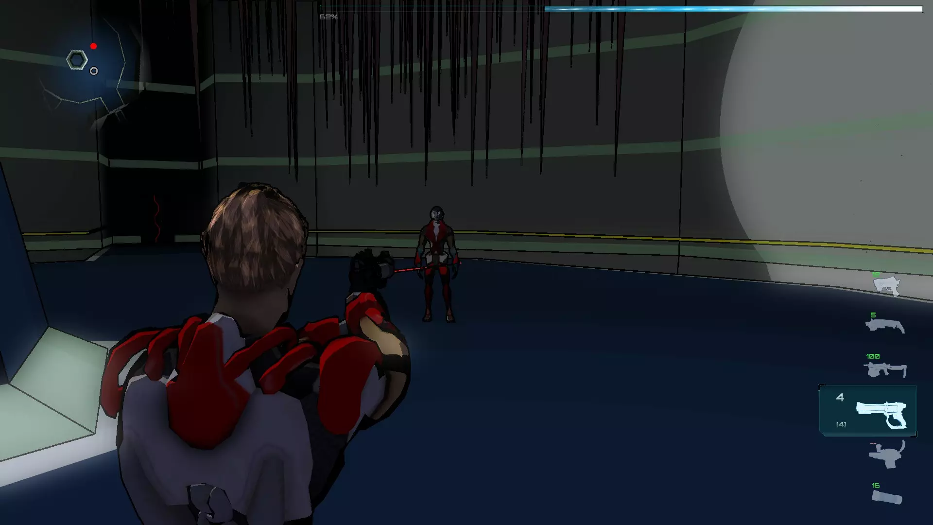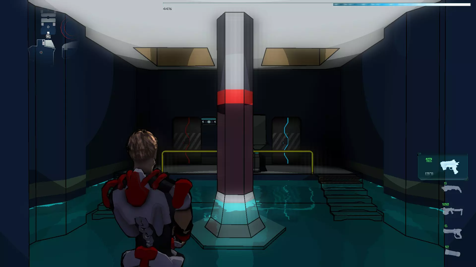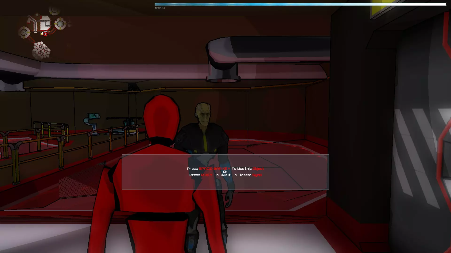 Los Dummies是基础型SynB,它们拥有强大的抗感染护盾,这使得它们能够在受感染的水中行动而不会损失生命值,并且还具备使用激活器激光的能力。每个区域都有一个或多个Los Dummies,它们将帮助我们完成谜题(有时还能在我们使用Nexus射击时,充当感染SynB的诱饵) 区域01 本区域的SynB: Ighel Red Dummie Nexus 步骤说明 我们从SynB Ighel开始,完成简短的控制教程后离开房间,前往主水池。可以看到,使用这个SynB无法穿过受污染的水到达池底的卡片。