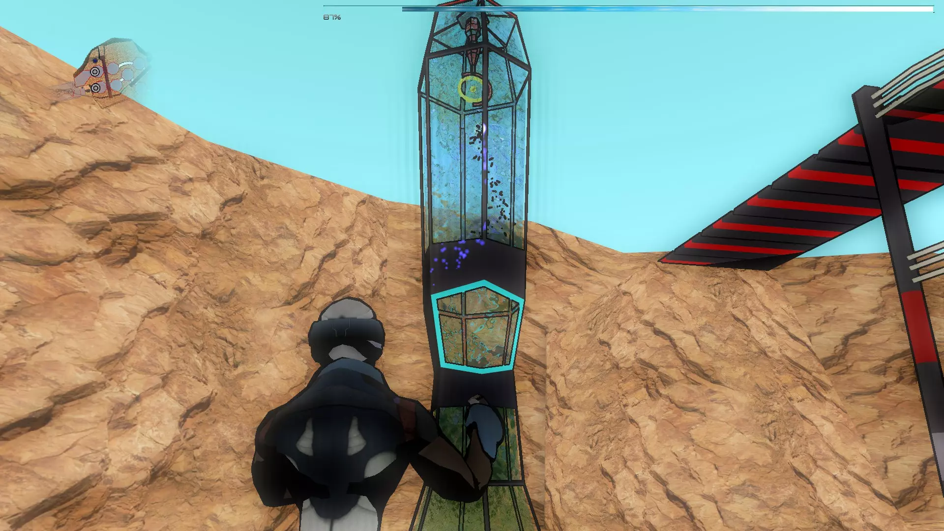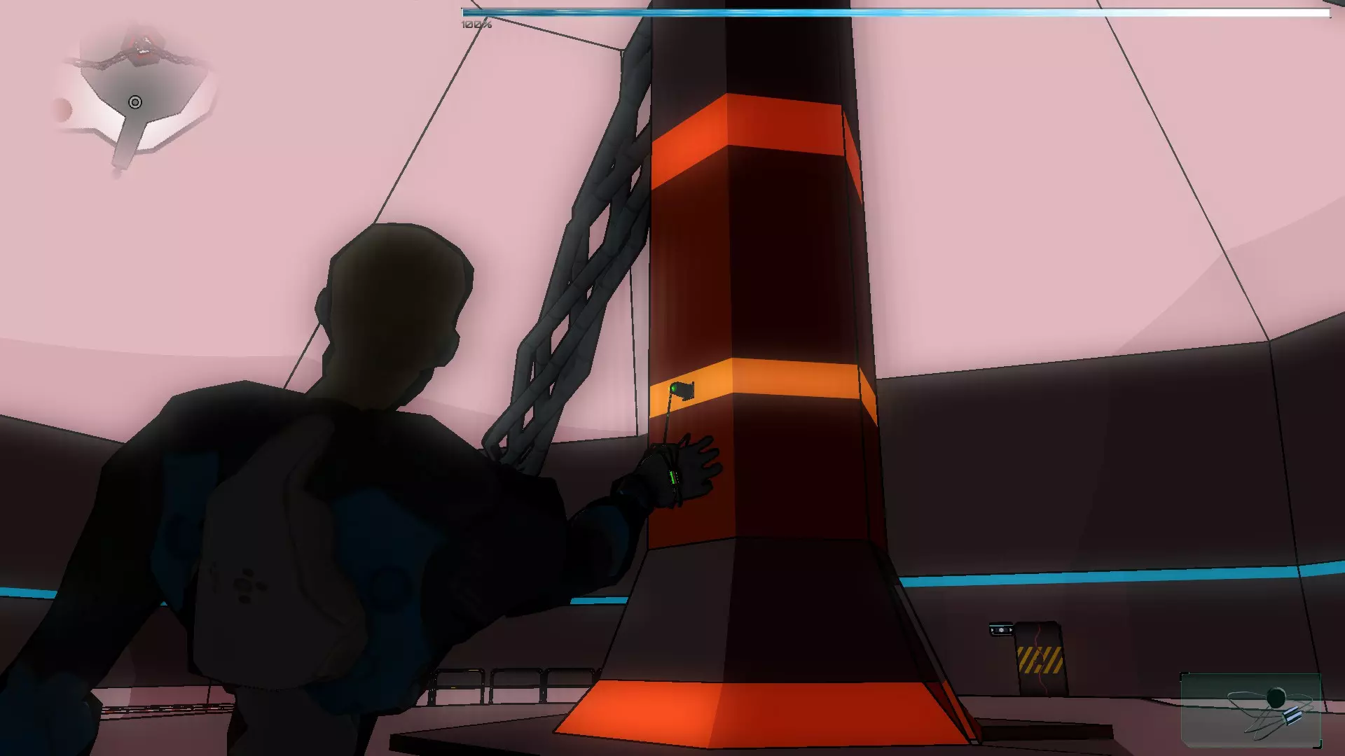 注意:截图中出现立方体是因为出现了一个漏洞。 在接下来的房间中,需要点击面板才能到达终点,点击那个唯一的面板,先激活两次,然后切换到【枢纽】。