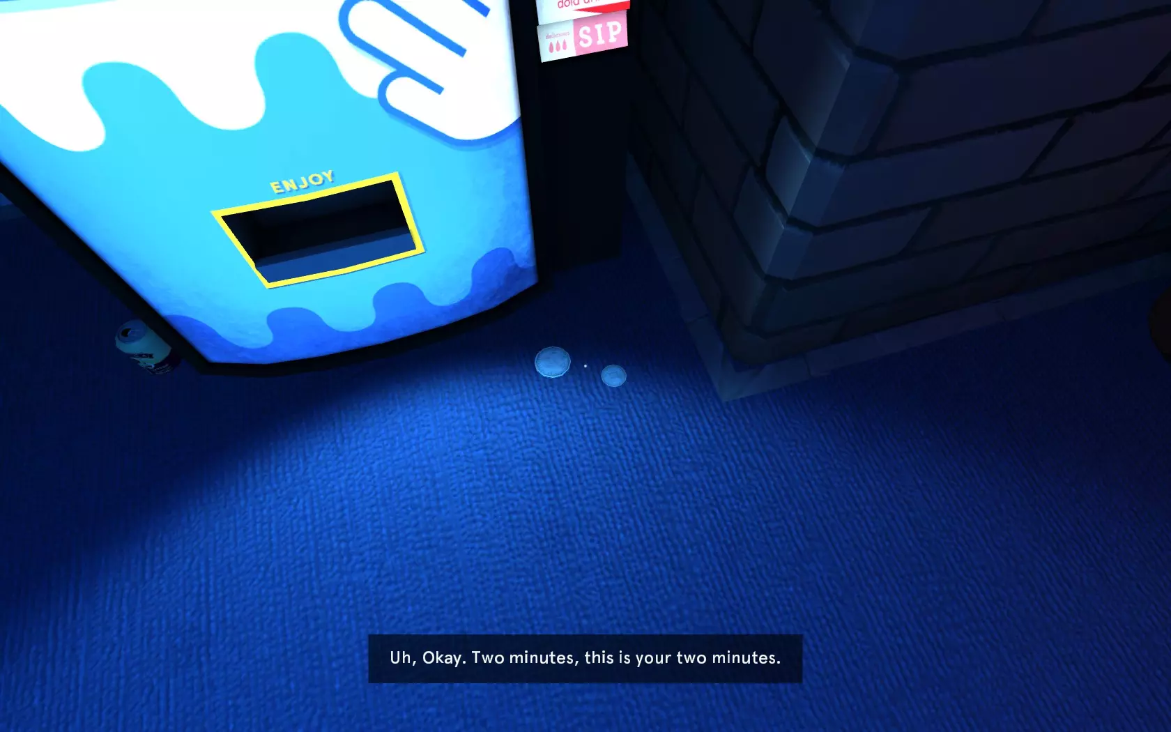 自动售货机里还有一枚硬币,把它拿走。