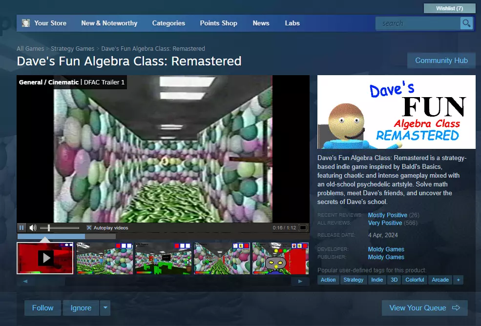 如何打开《戴夫的趣味代数课:重制版》? 这是一个关乎全人类的问题。 1. Steam页面 在Steam上打开游戏页面