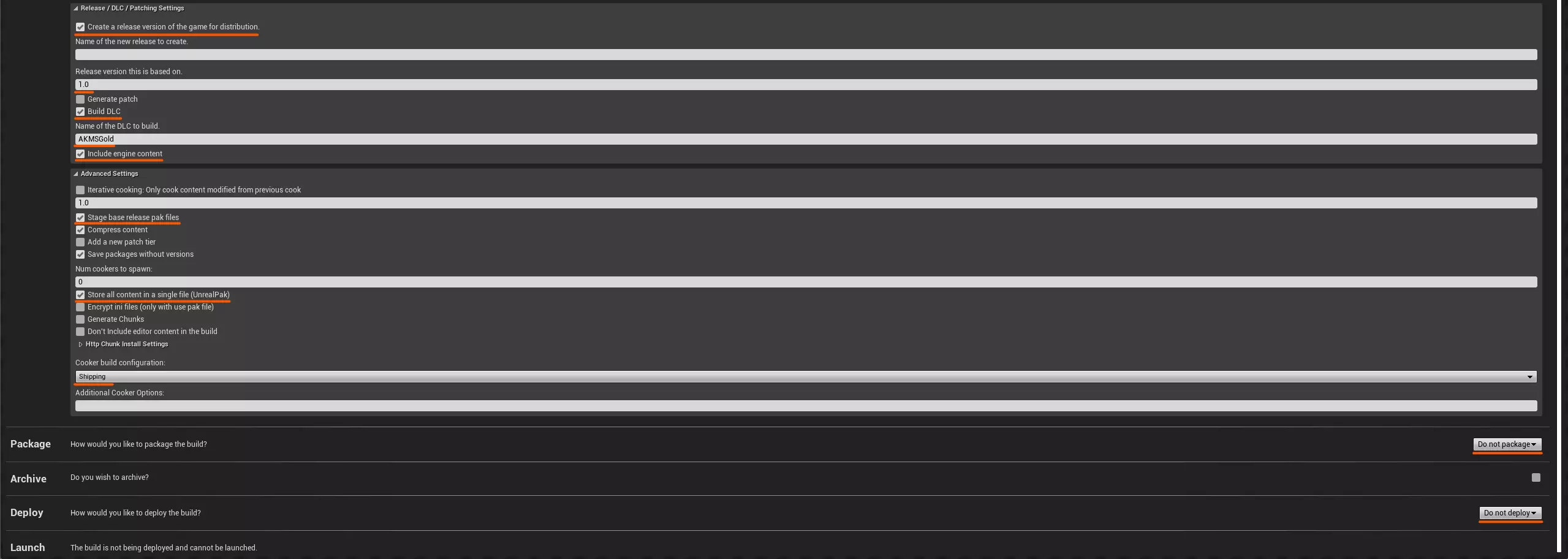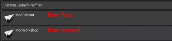 在需要输入DLC名称的字段中,请指定你创建的插件名称。在我们的示例中,该名称为【AKMSGold】。 因此,我们有两个配置文件。第一个是项目配置文件,第二个是我们的模组配置文件。 接下来,请按以下顺序运行它们:首先运行项目配置文件,然后运行模组配置文件。