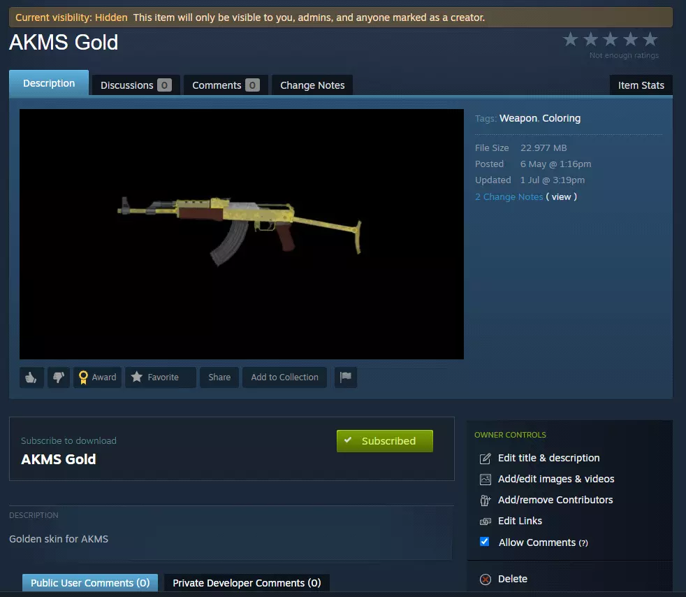 当你填写完感兴趣的字段后,点击【应用】按钮。之前创建的模组应会在Steam创意工坊中更新。结果: