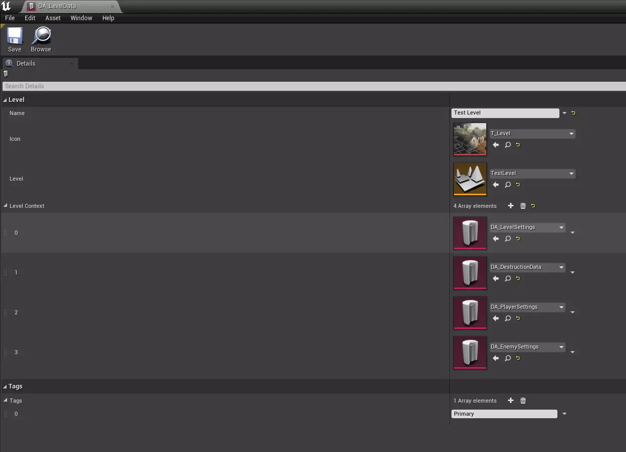 • 在地图各处放置角色并为其设置标签。接下来,我们将以目标点为例进行说明,但你完全可以使用任何角色,只要它们属于已创建的插件或虚幻引擎的默认角色即可。 目标点可在“放置角色”->“所有类”->“目标点”中找到。 关卡标签表: 1. 名称:PlayerSpawnPoint,描述:设置玩家的生成点。 2. 名称:EnemySpawnPoint,描述:设置敌人的生成点。 3. 名称:VehicleSpawnPoint(n),描述:设置载具的生成点。括号中的数字(从1开始)用于队伍分组。例如,玩家使用VehicleSpawnPoint(1),敌人使用VehicleSpawnPoint(2)。4. 攻击方向点:设置攻击方向。 5. 士兵防御位置:设置士兵将进入防御状态的位置。用于某一方以防御状态开始的情况。 6. 载具防御位置:设置载具将进入防御状态的位置。用于某一方以防御状态开始的情况。 7. 防御建筑:表明该实体为防御建筑,士兵可在其中占据阵地。在此实体内,需放置标签为【#5】的目标点。 8. 小队索引(n):为标签【#3】强制设置小队编号的标签。默认情况下,小队将按照目标点添加到场景的顺序出现。以小队索引(0)开始。9 坐姿 用于为士兵设置坐姿的标签。需与标签#5一同使用。10 卧姿 用于为士兵设置俯卧姿势的标签。需与标签#5一同使用。11 寻找掩护 指示士兵寻找掩护的标签。需与标签#5一同使用。 • 最后阶段,与其他任何模组一样,我们需要填充数据资产。关卡有两个关键数据资产,分别是关卡和关卡上下文。第一个资产收集关卡的所有数据,包括【主要】标签。关卡上下文设置需要包含在关卡中的额外数据。它们的名称前缀为【BP_Context】。那么,首先,让我们在BP_Context_LevelSettings中设置游戏难度和一天中的时间(这将与你的等级相对应)。