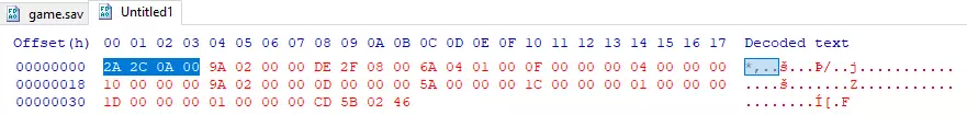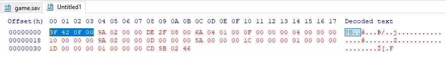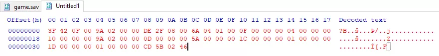 现在你已经准备好所有工具了,接下来我会向你展示十六进制编辑和数值修改的基础知识! 使用十六进制编辑器修改物品 第一部分 当你准备好所有工具后,确保你的转换器、十六进制编辑器和笔记都显示在屏幕上。然后打开十六进制编辑器,点击“打开”,并在其中打开你的存档文件game.sav。它看起来应该像这样: