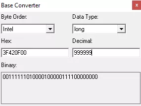 你需要同时打开三个主要工具:转换器、记事本和十六进制编辑器,所以尽量在屏幕上合理排列它们,以便能同时操作。 警告:确保你的转换器设置与我的一致,字节顺序设为Intel,数据类型设为long,因为有时数字会反向排列,这样设置可以将它们调整为适合这款游戏的格式。