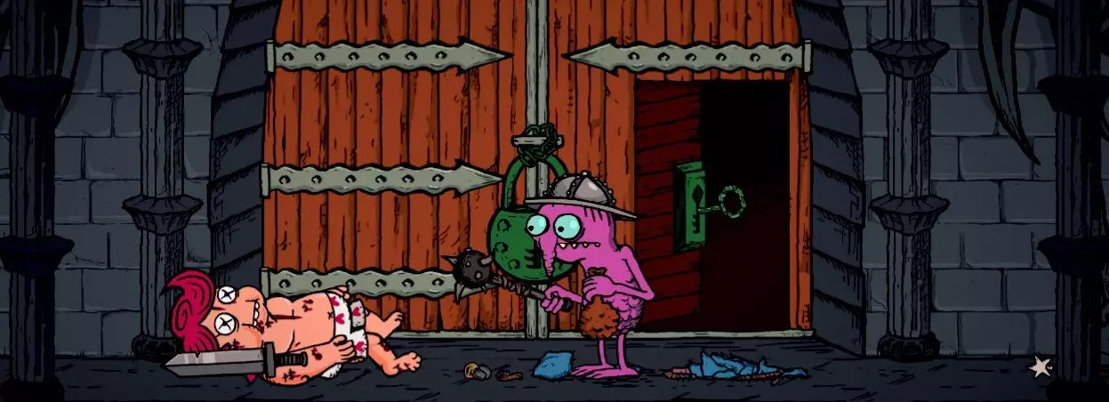 使用休伯特的棍棒或尸体杀死害死他的敌人。你恰好是这里的英雄,敌人总是把你当作主要目标,常常忽略追随者。但好心的乌龟经常主动提出穿过那扇可怕的门去执行侦察任务。我们总是同意,如果他没有回来,就意味着有人在帮你达成成就。我们走进房间,拿起他的棍棒或尸体(哪个离得近就拿哪个),然后痛扁所有人,因为没人会承认。牺牲是必要的。