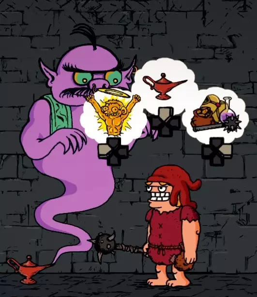 【Catch a fish】 这是一个与“Wish(愿望)”和“Fish(鱼)”的文字游戏相关的相当棘手的成就。而谁会实现这些“愿望”呢?没错,就是灯神。我们摇晃神灯并选择最上方的选项,说“我想要再许一个愿望”。灯神当然不会欣赏这种把戏,会回到灯里。我们再重复两次,灯神为了摆脱这个愚蠢的主角,会假装把“我想要一个愿望(I want one Wish)”听成了“我想要一条鱼(I want one Fish)”。 - 什么?鱼,你说鱼?是的,是的,好吧,鱼就鱼。 我们选择它,然后会为自己的某个误判而感到“庆幸”…… 【Dance, don't fight!】
