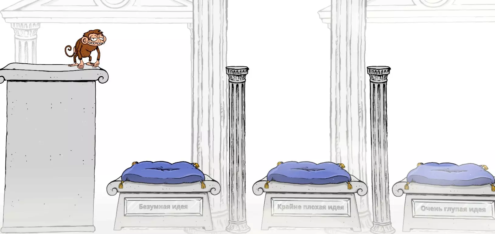 这只猴子是你思想的本质与化身。可惜的是,她没有任何钹。 每当有人向我们提出难题,你的大脑就会沸腾,迫使这只笨猴子去寻找最佳答案。她要在不断消失的猜测云朵和知识支柱上跳跃,还要灵巧地躲避愚蠢与无知的摇摆铁锤。任务就是跳过你的脑回,最终落在一个华丽、聪明且闪耀的答案软垫上……太棒了! 这完全是技巧。