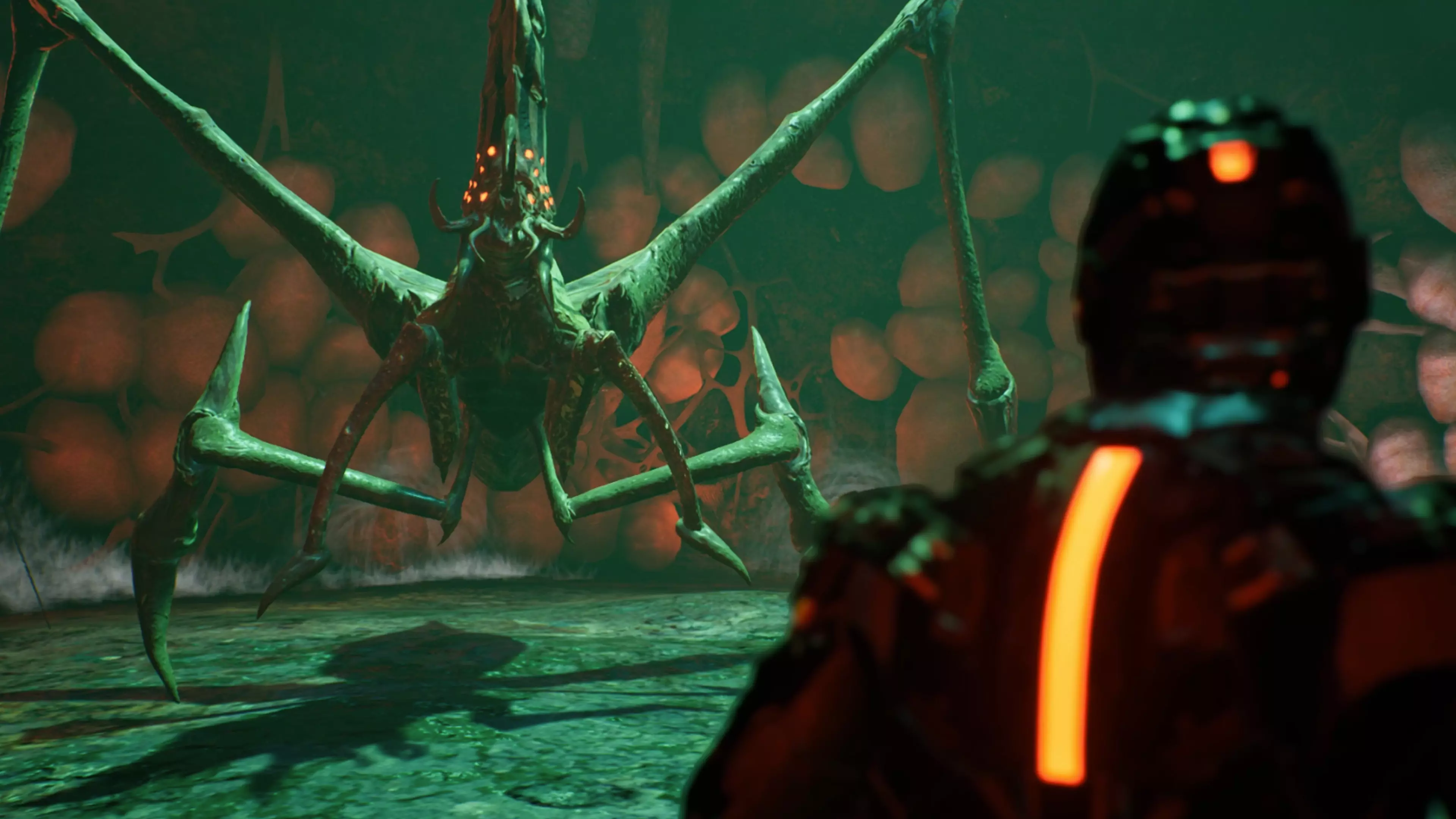 Dementula的 boss 巢穴是一个圆形房间,里面布满了她产下的卵。 如果你离这些卵太近,或者你或 Dementula 打破了它们,卵就会释放出体型较小的 Dementula 分身。 随着战斗进行,她的机制之一是在每个攻击循环中打破一次这些卵。 满血状态:她的基本攻击循环如下: 在较远的距离向你吐口水。 靠近她会触发一次无法格挡的向前挥击,你可以轻松闪避(看起来像 < o > 的红/橙色标记就代表这个技能)。 如果在她使出这招后你向后退,她会发动一次突进,落地时会陷入严重的硬直状态。 此时你可以用近战武器向她进行冲刺跳跃,将她击晕并进行几次攻击。尝试让她重复突刺,在几次将她击晕控制后,她会发出求救尖叫并弄破一些自己的卵。 3/4生命值 当她的生命值降至约3/4时,会开始使用一种不可格挡的长距离前挥攻击。她会将长长的前腿向后上方收起,然后向前猛刺,攻击距离是第一阶段不可格挡攻击的2-3倍。 她使用此招时,你也可以跳跃将她击晕。生命值剩余一半时,她会开始使用一种新的近战不可格挡攻击。此时她会抬起修长的双臂,向身体两侧高举,如同芭蕾舞演员准备旋转一般,随后围绕自身进行大范围的双重范围攻击。 治疗方面,在她任何主要招式结束后,或者在她吐息后立即闪避,你都可以恢复能量。如果你与她保持足够距离,就能及时恢复能量并闪避下一次吐息。