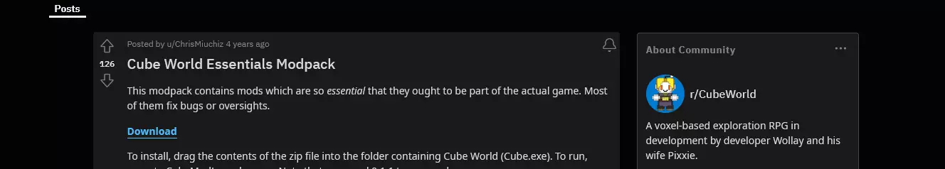 许多玩家可能和你一样,更喜欢对《魔方世界》的原版体验进行模组修改。但首先你需要拥有游戏本体。 你可以在互联网档案馆轻松找到《魔方世界》Alpha版本的存档。 JimmyJTech在其YouTube视频中提供了两个链接,内含安全且已安装模组的游戏Alpha版本:更新后的《魔方世界》Alpha版本和带有滑翔翼故障的原版《魔方世界》Alpha版本。 要游玩此版本的《魔方世界》,你需要解压这些文件,进入游戏主文件夹,然后双击Cube.exe即可。你可以通过使用Server.exe轻松搭建局域网服务器,借助LogMeIn Hamachi(或其他同类软件)创建私人虚拟网络,并将你的IPv4地址分享给好友以进行联机游戏。 【Alpha版】如何在《魔方世界》Alpha版上安装模组 首先,你要知道并非所有早期版本的《魔方世界》都支持模组。你需要最新的Alpha版本,即“Updated”版本。 现在下载该文件。这是《魔方世界》模组启动器,但这次你不需要下载最新版本。你需要回溯并获取2018年的“Cube World Mod Launcher v1.5”,然后将其解压到游戏的主文件夹中……或者,如果你找不到,可以尝试从Reddit用户ChrisMiuchiz在名为【Cube World Essentials Modpack】的帖子中提供的链接下载。