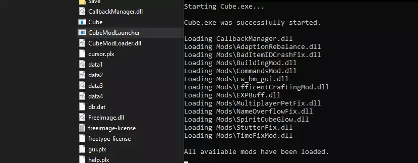 该链接包含模组启动器和已安装多种模组的模组文件夹,非常实用。 该模组包包含适应平衡、错误物品ID崩溃修复、高效制作、经验值增益、多人游戏宠物等级修复、名称溢出修复、卡顿修复以及系统时间溢出修复。 现在打开CubeModLauncher开始游玩吧!