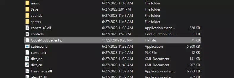 你首先需要下载一个名为【CubeModLoader.fip】的文件。
