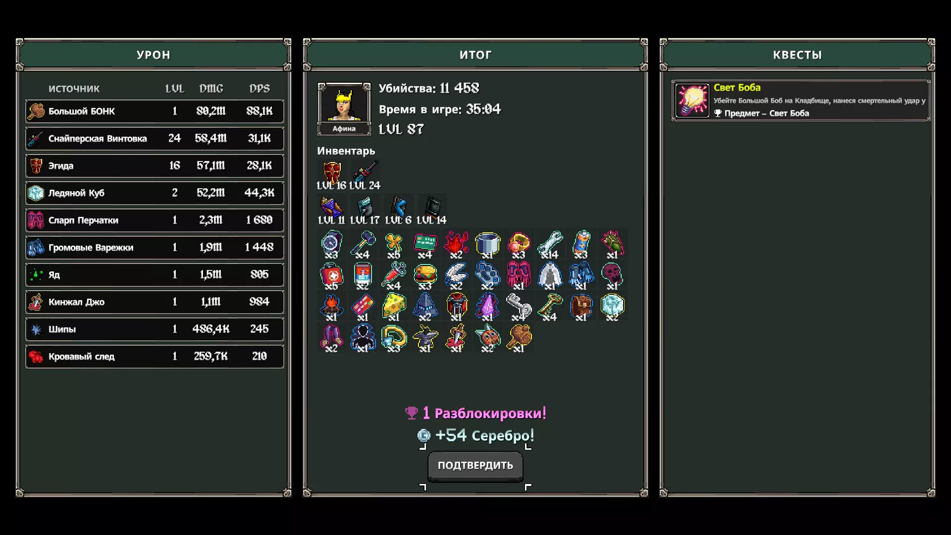 有点像生存类游戏,用于替代护甲。 总的来说,除了尖刺和混乱之外,所有的卷轴都不错。理论上,你甚至可以用两个卷轴通过这个试炼,但具体情况具体分析,你可以随意尝试。 物品: 关闭所有可能造成远程伤害的东西,还有尖刺、毒药(娃娃)以及任何类似的无需你攻击就能对 Boss 产生影响的物品。中等水平 总的来说,达到这样的程度后,你就成为了“Gigachad”,恭喜你。 该挑战的关键特点之一是你必须获得大量的【扳手钥匙】。