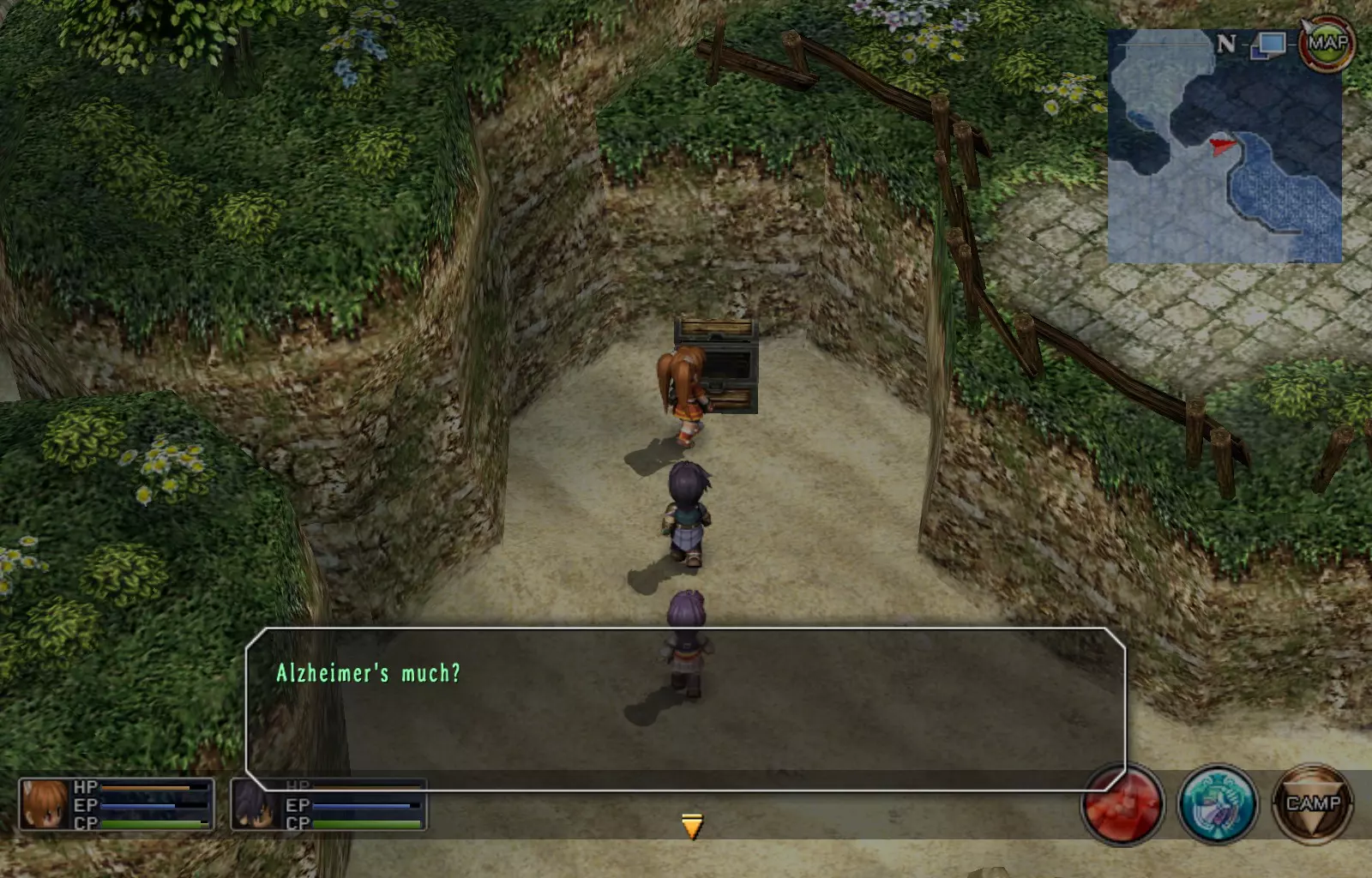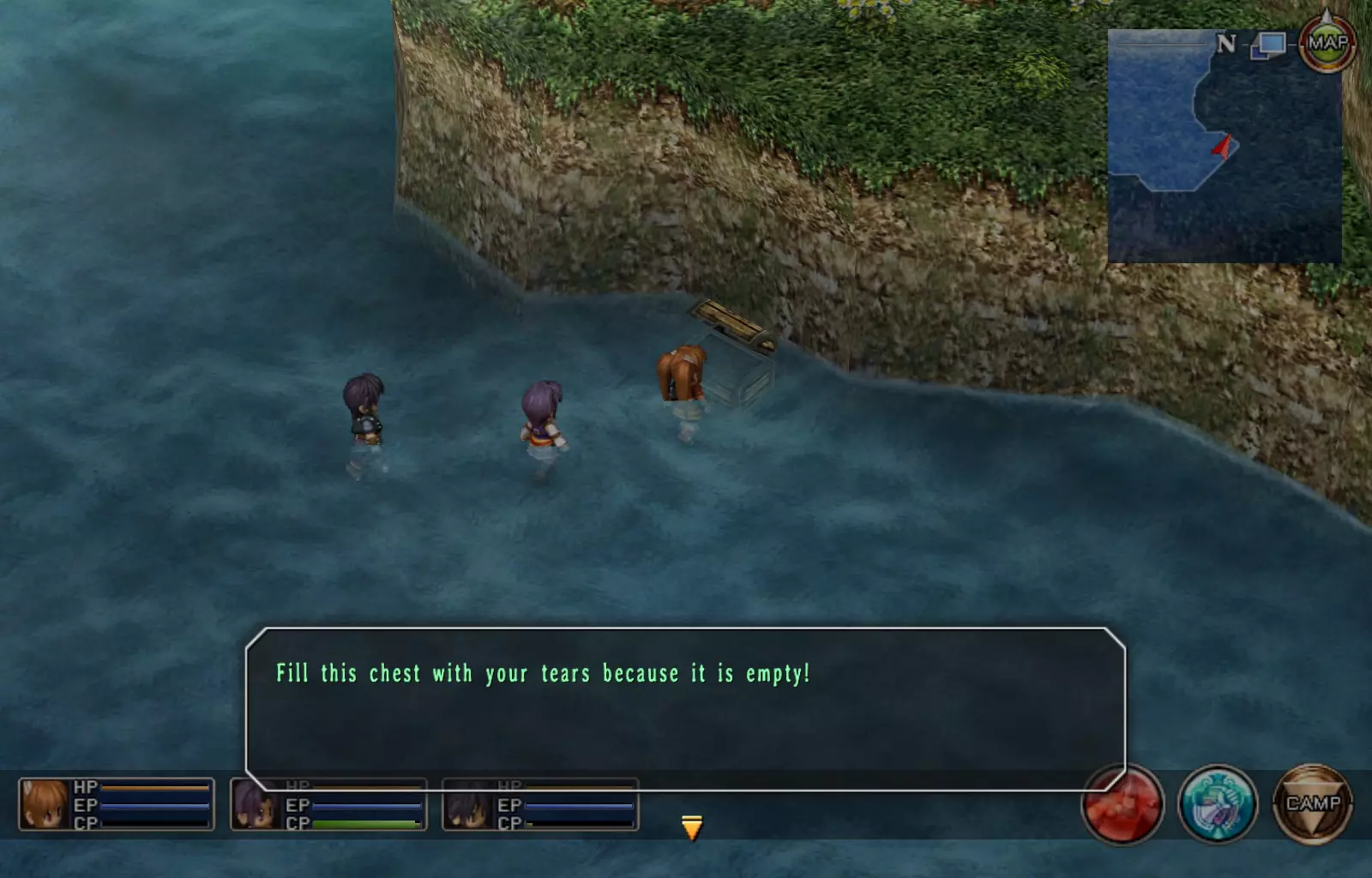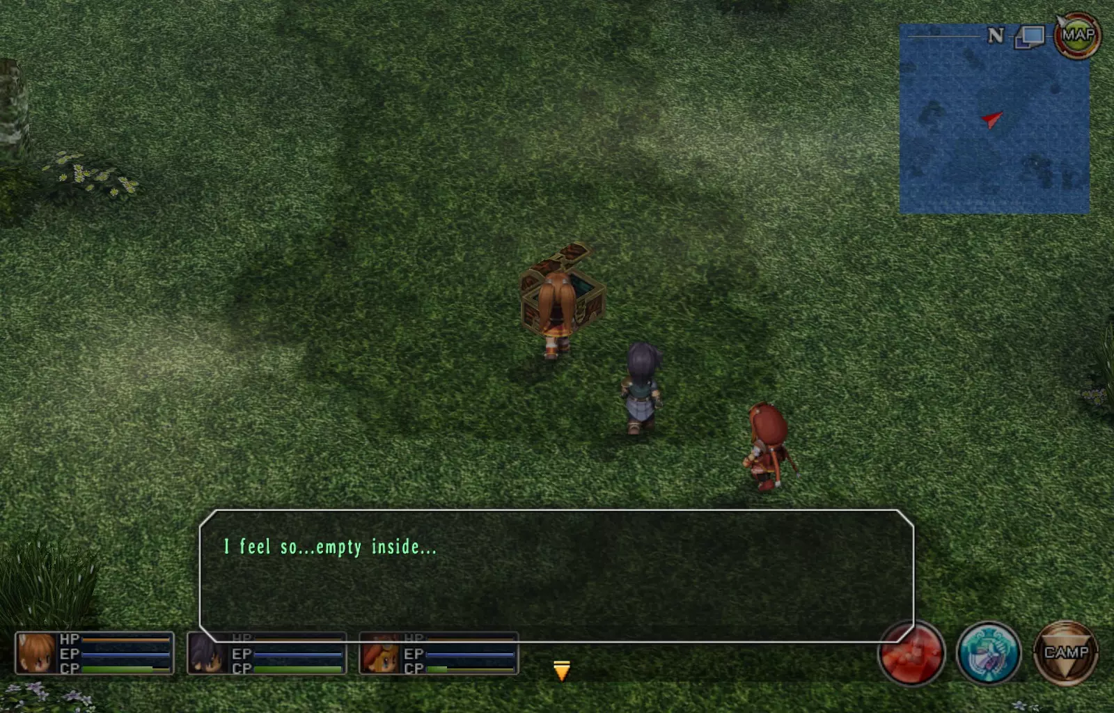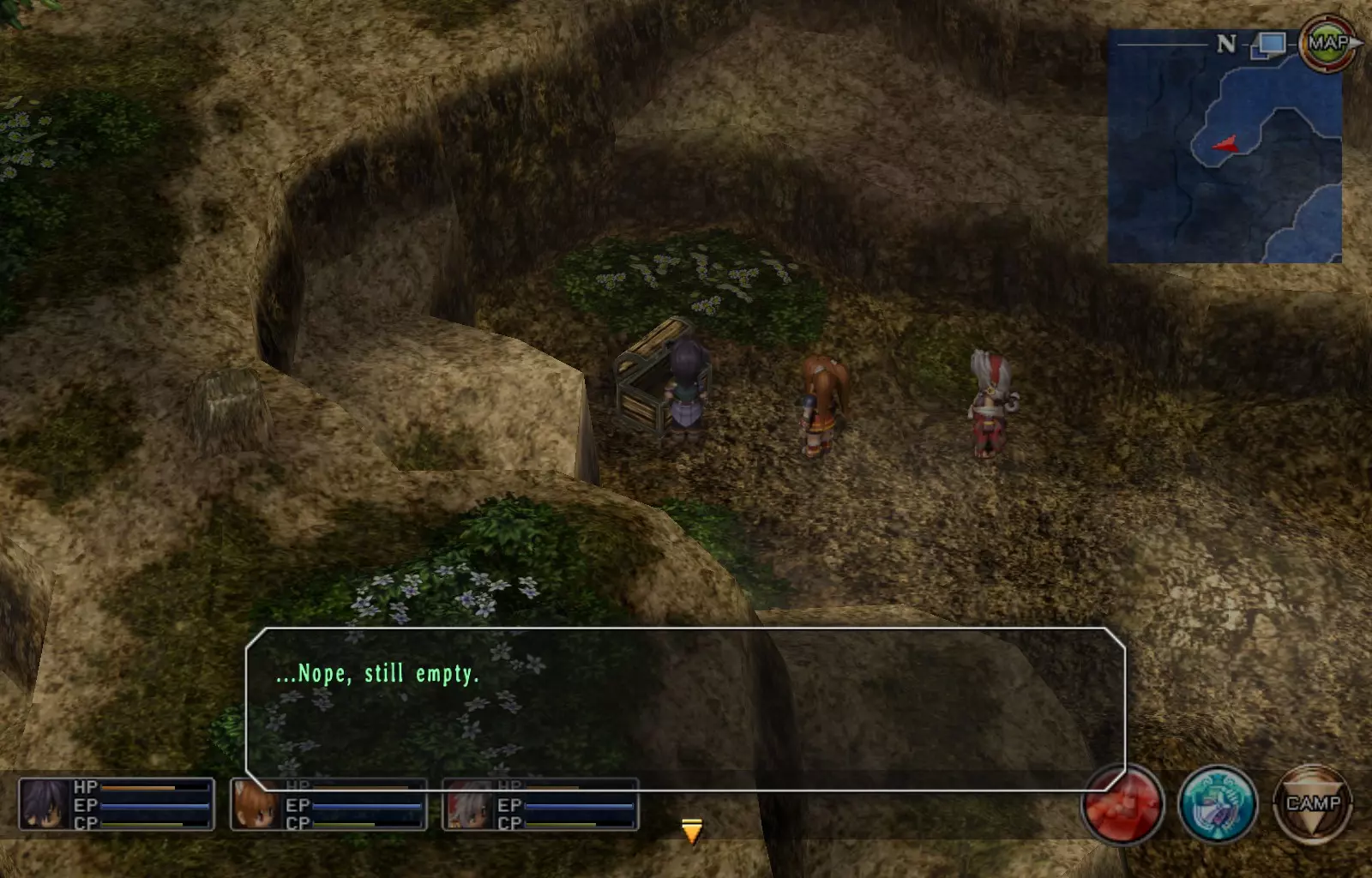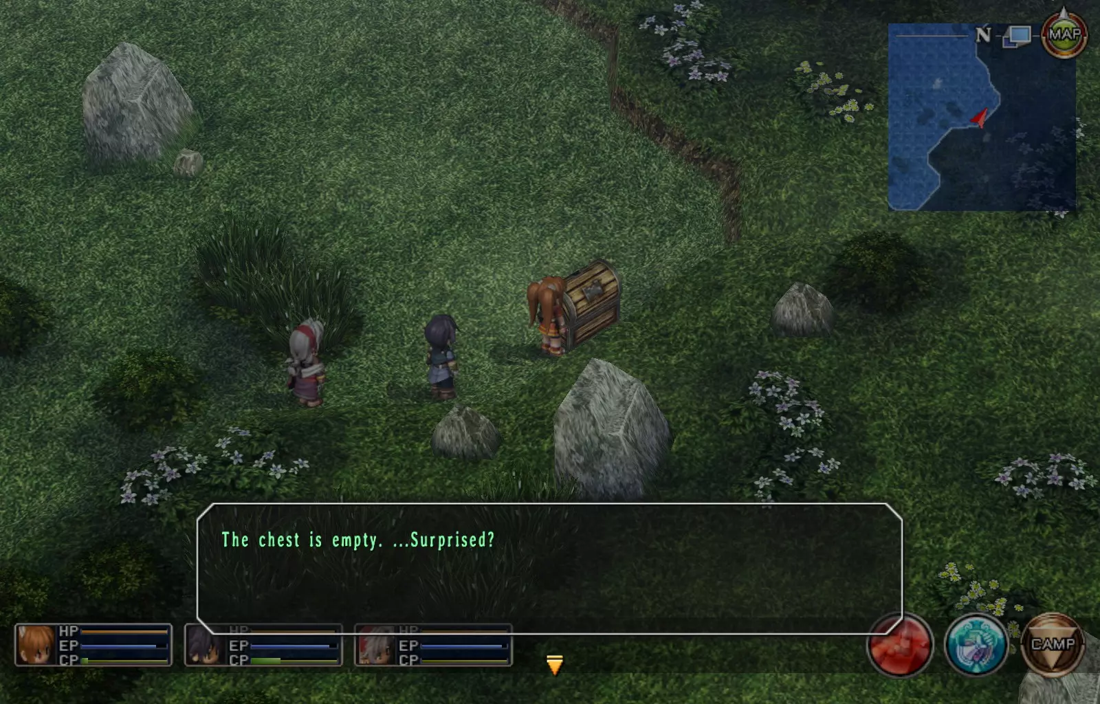 第一章结束结果:(33[+1][+3]/163个宝箱) 注意,这里又有3个宝箱不算数。我不知道是哪两个,因为检查完所有宝箱后,我显示的是33/163。 其中一个宝箱位于空贼要塞。另外两个,我不清楚。 第二章 克朗小径,卢安侧 [RKrTr] EP填充剂(38/163) 沿着小路走,你会看到小路分叉通向一些树木。宝箱就藏在这些树下面。
