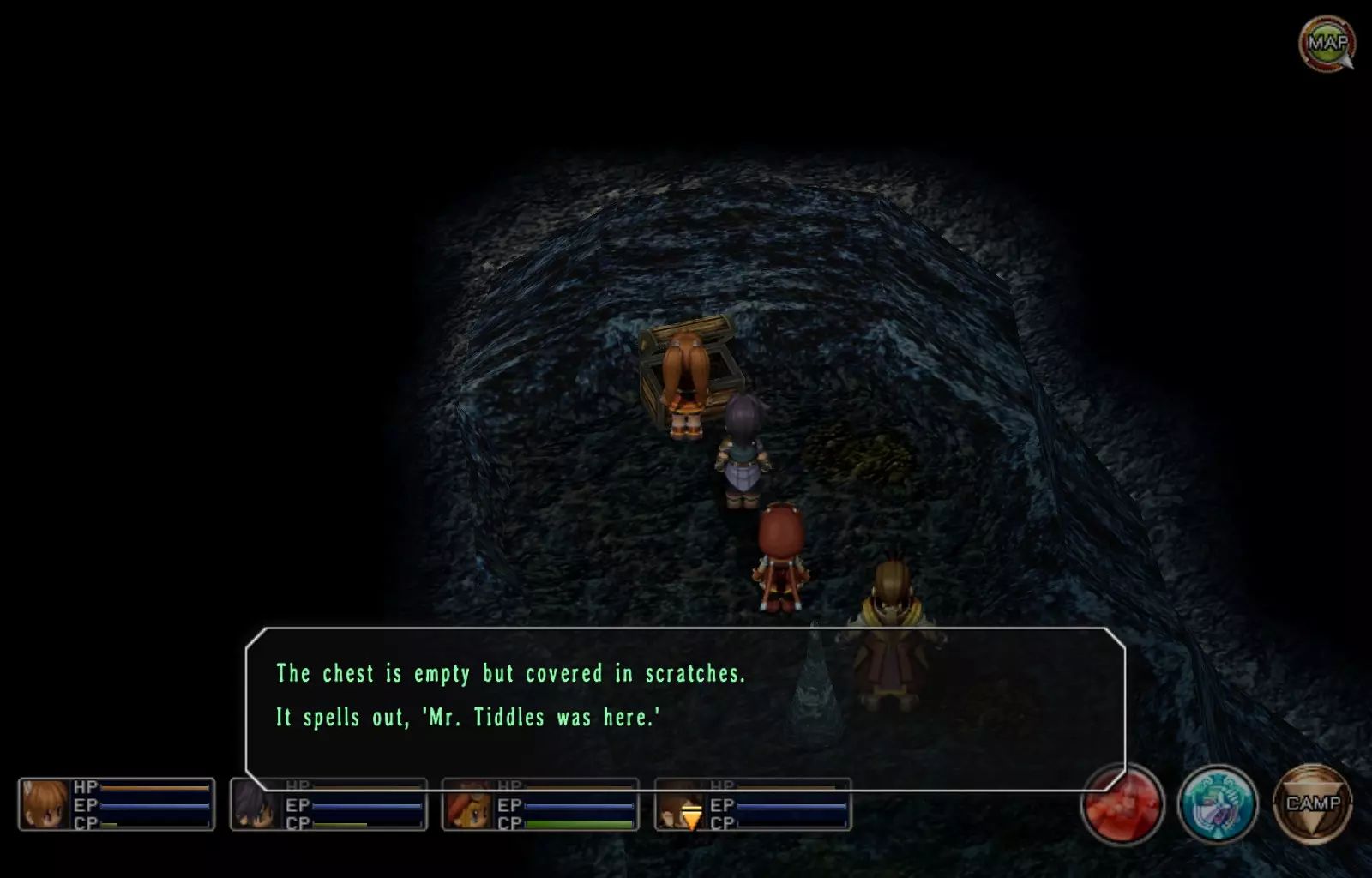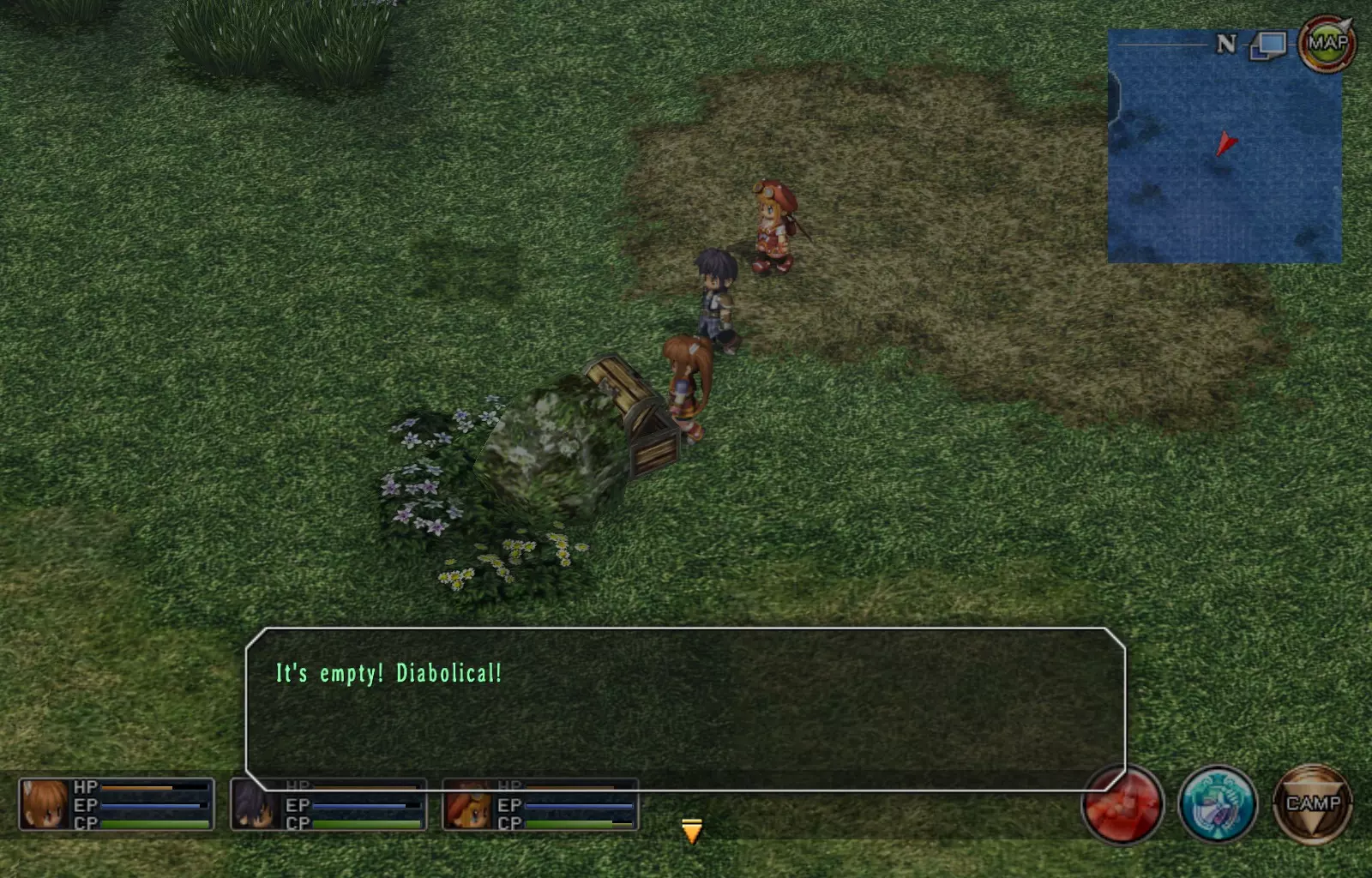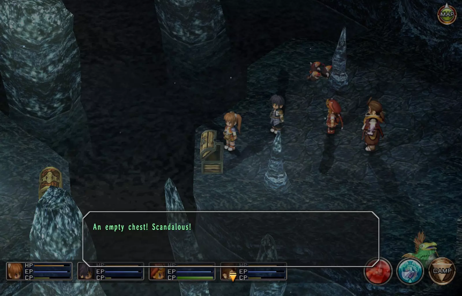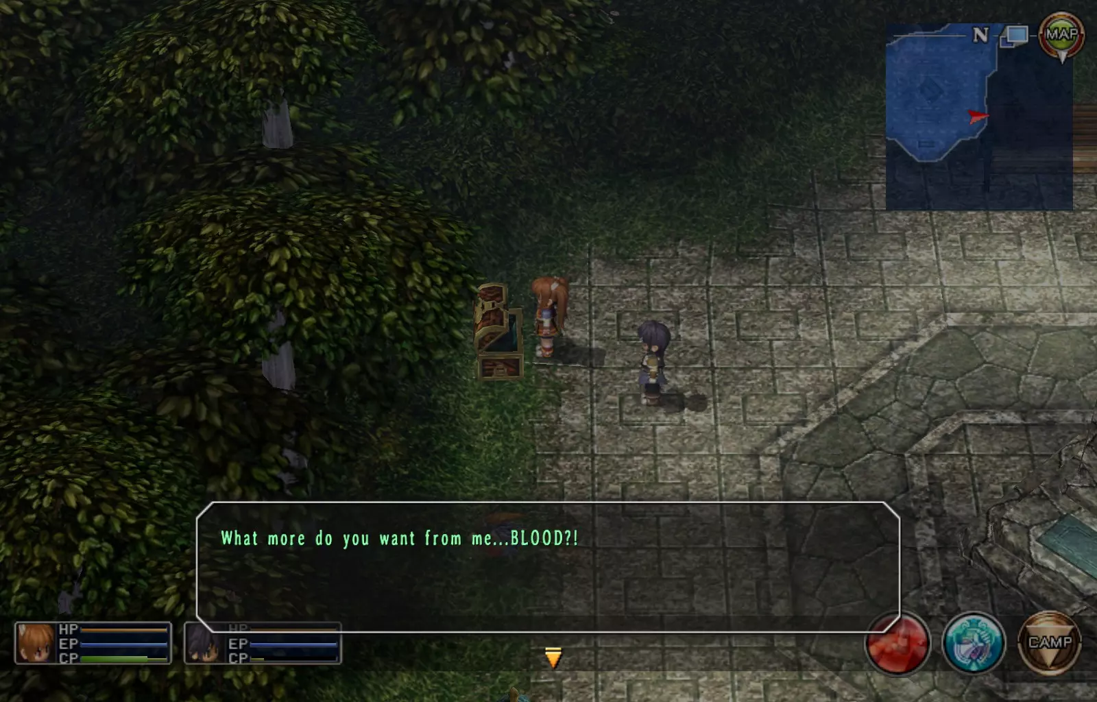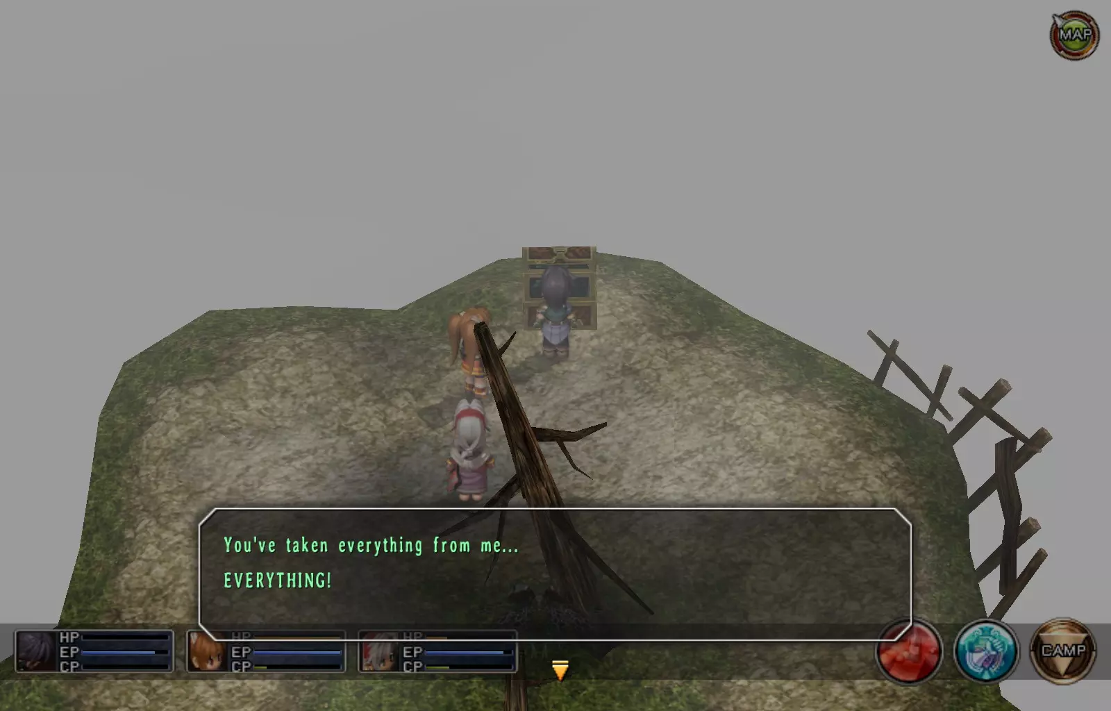 第一章结束结果:(33[+1][+3]/163个宝箱) 注意,这里又有3个宝箱不算数。我不知道是哪两个,因为检查完所有宝箱后,我显示的是33/163。 其中一个宝箱位于空贼要塞。另外两个,我不清楚。 第二章 克朗小径,卢安侧 [RKrTr] EP填充剂(38/163) 沿着小路走,你会看到小路分叉通向一些树木。宝箱就藏在这些树下面。