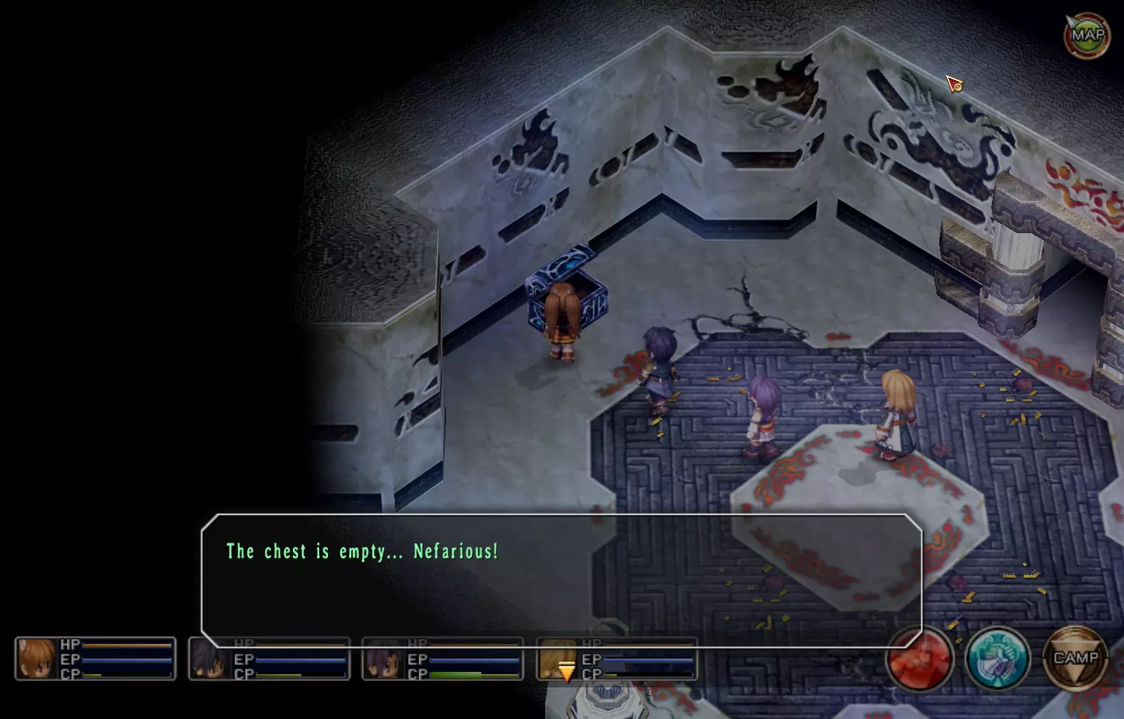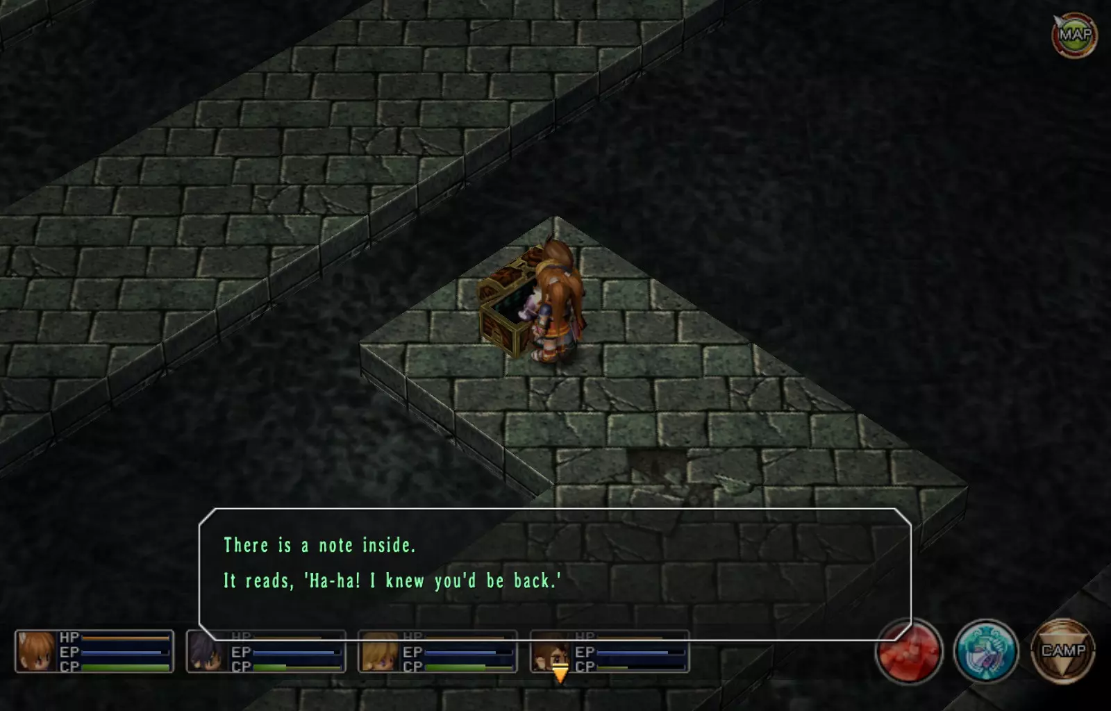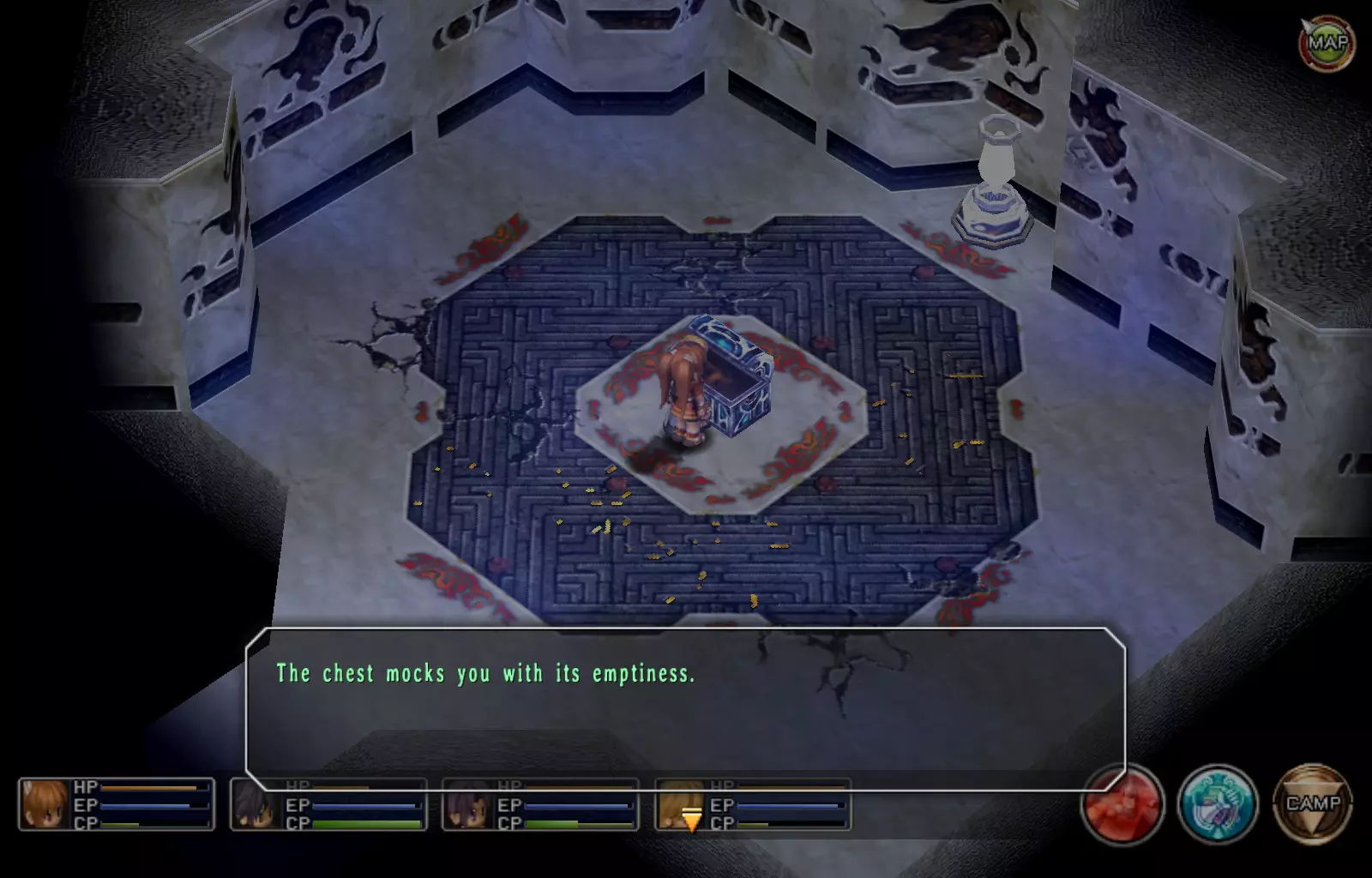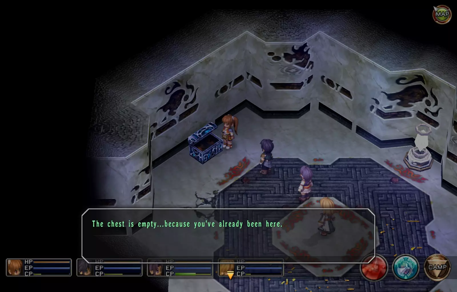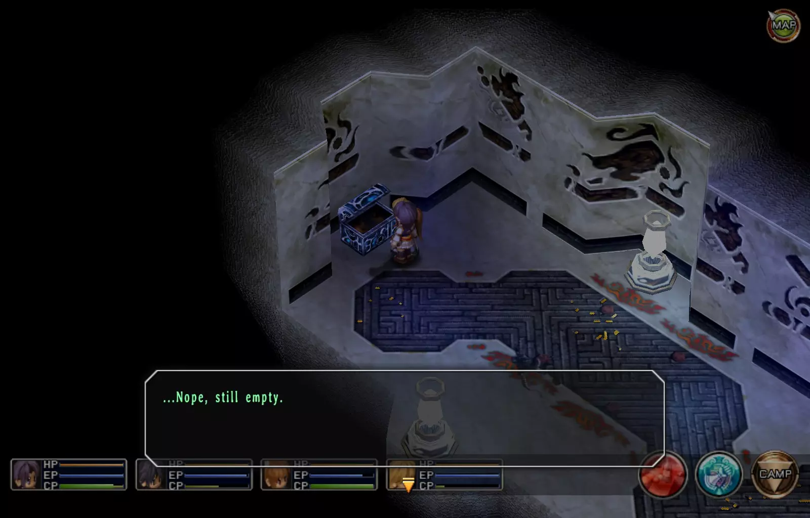 希尔芬长靴(女)(148/163) 完成上一个EP充能EX后,穿过南侧的门,继续沿着走廊向下走,进入最西侧的第二扇门(第一扇门是地牢的推进路线)。