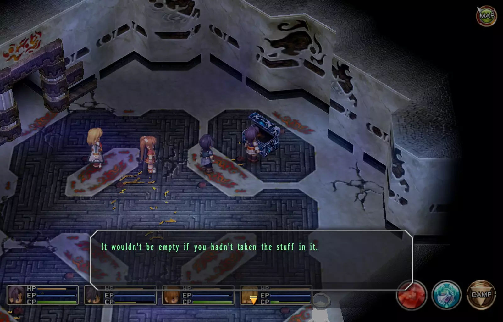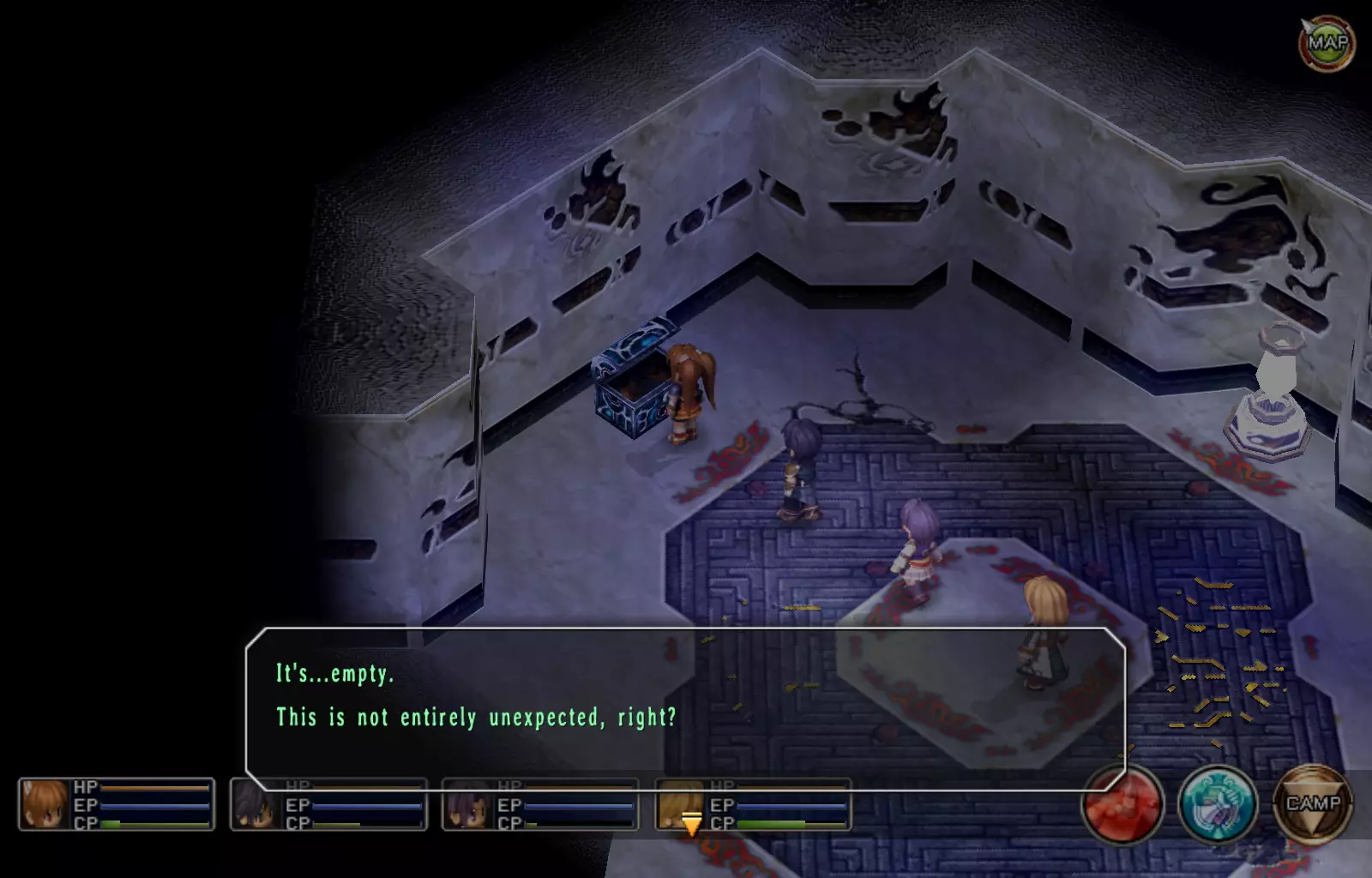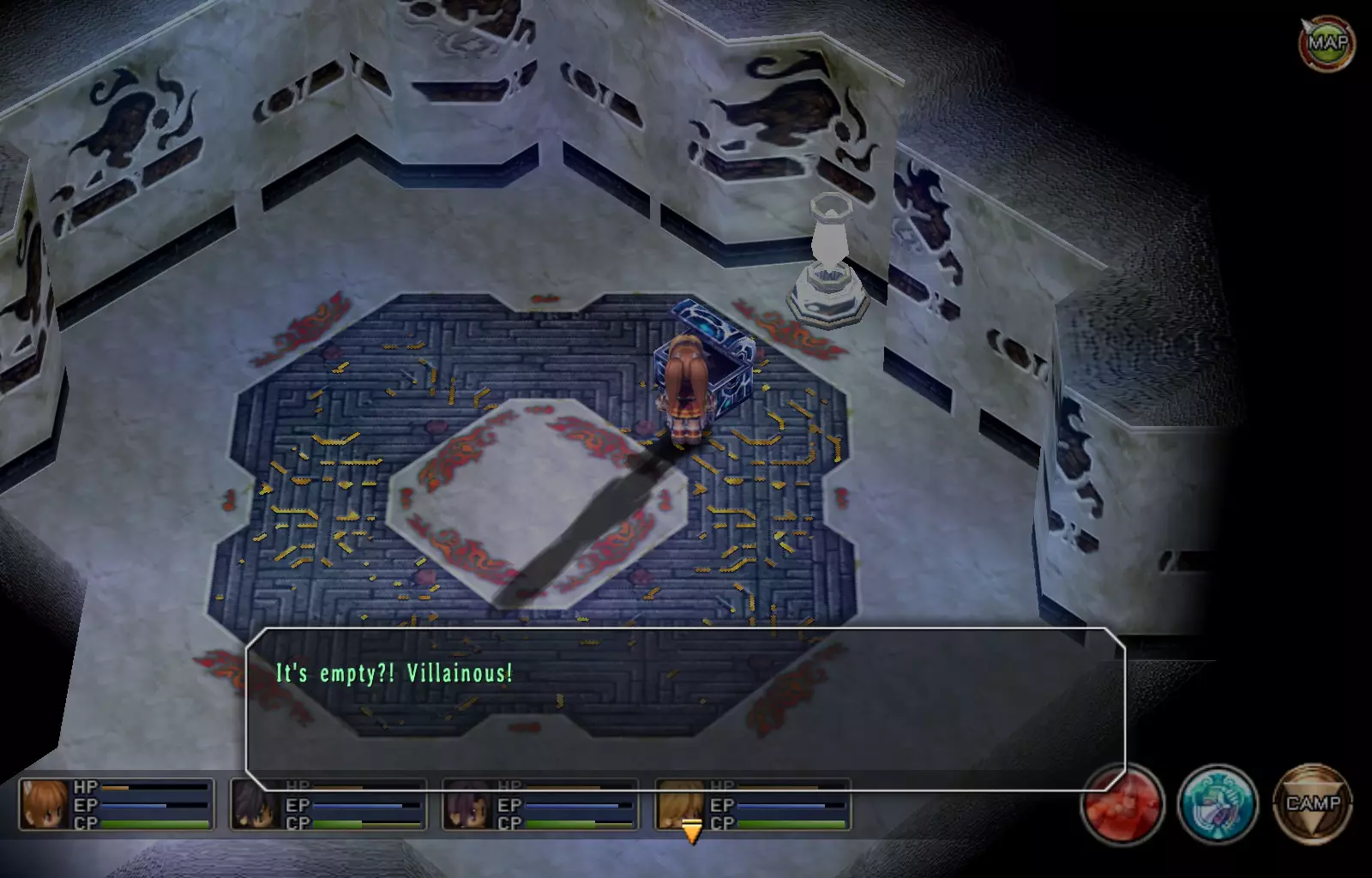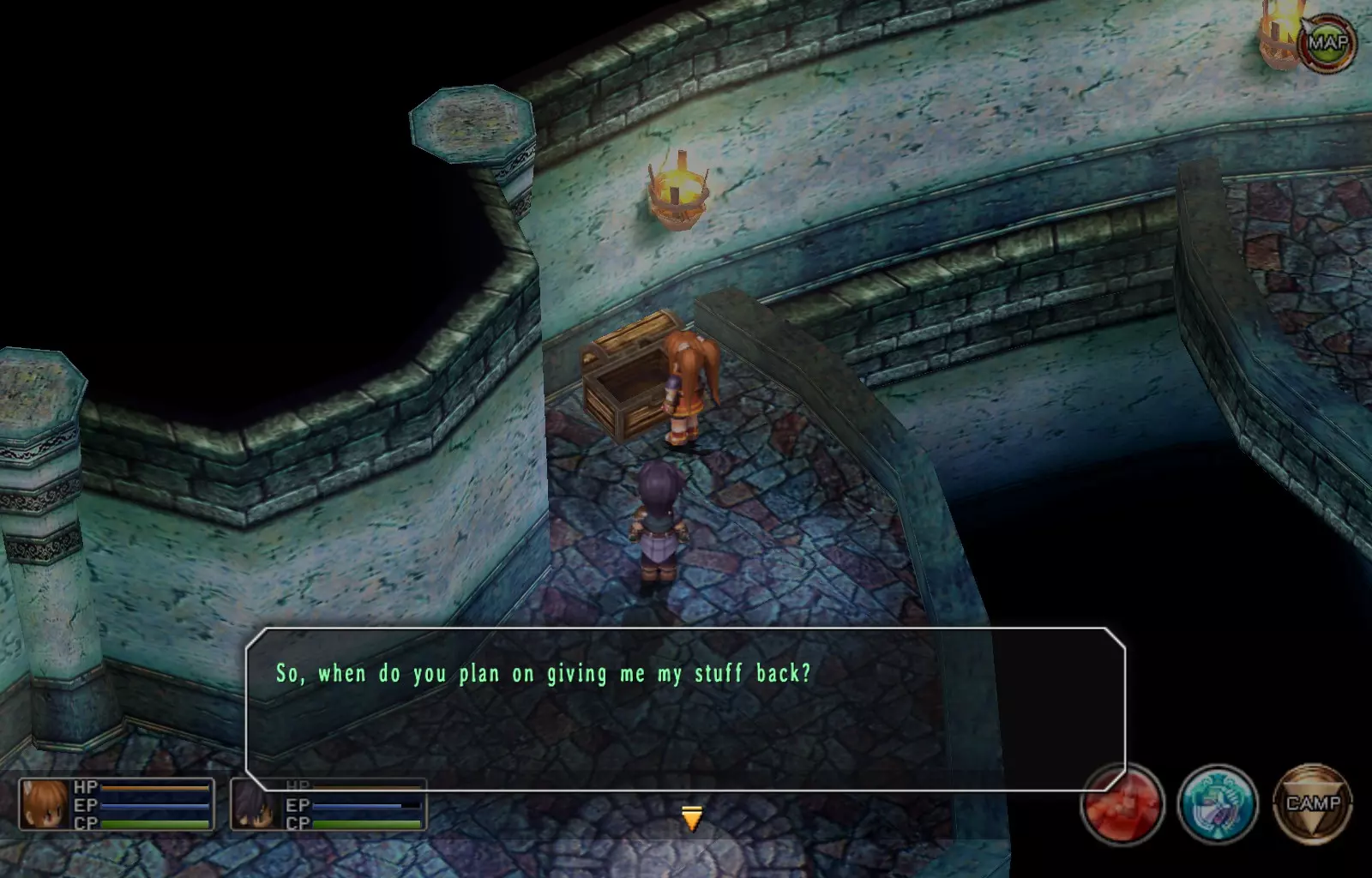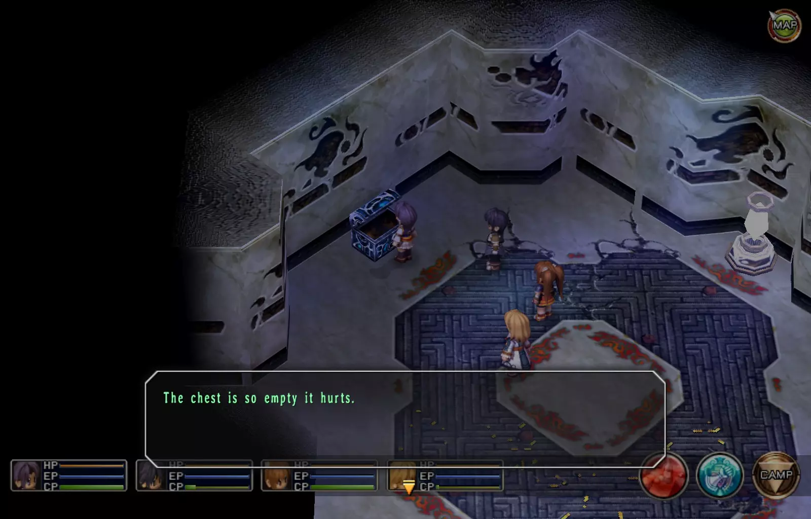 希尔芬长靴(女)(148/163) 完成上一个EP充能EX后,穿过南侧的门,继续沿着走廊向下走,进入最西侧的第二扇门(第一扇门是地牢的推进路线)。