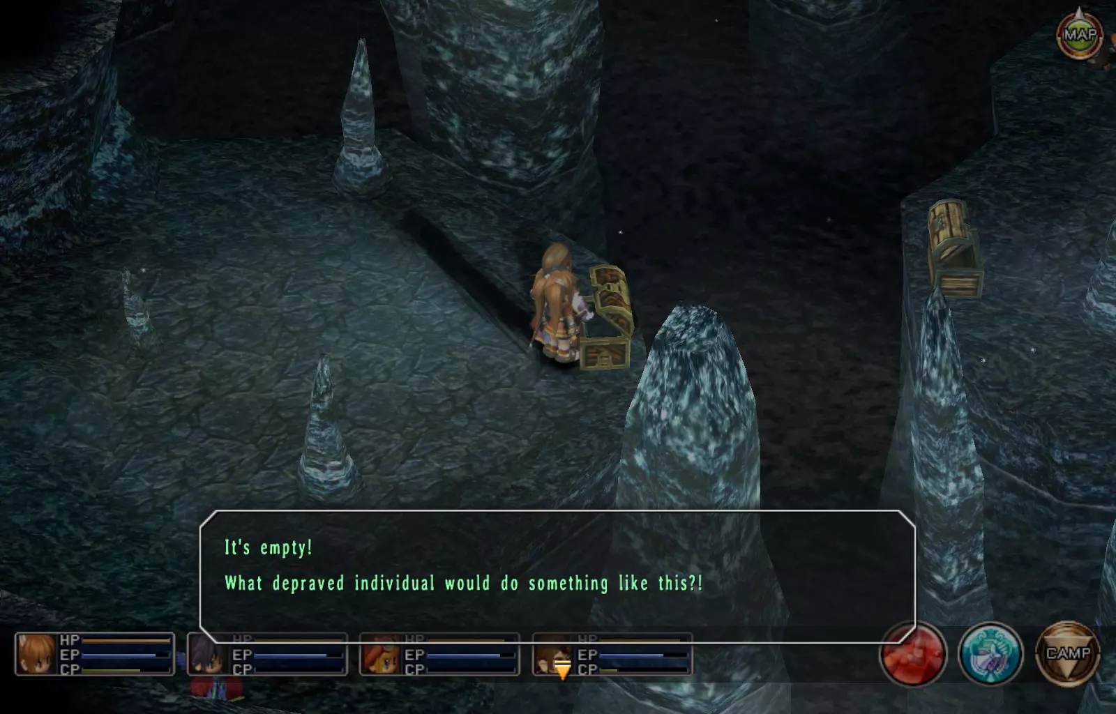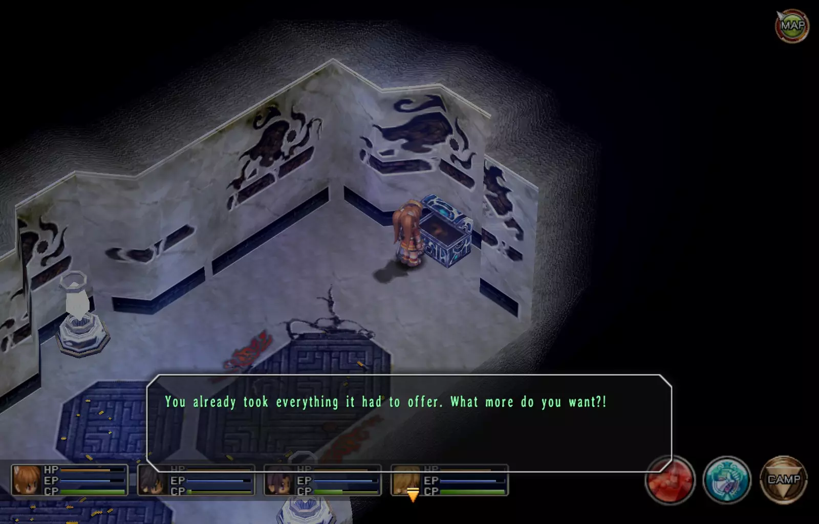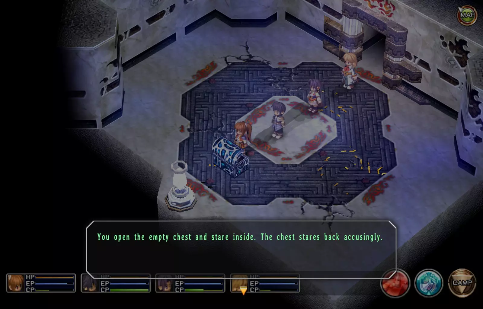 治愈香膏(114/163) 选择东侧路线后,你会遇到3扇门。最北侧的门是前进的道路,而最南侧的门内有这个宝箱。