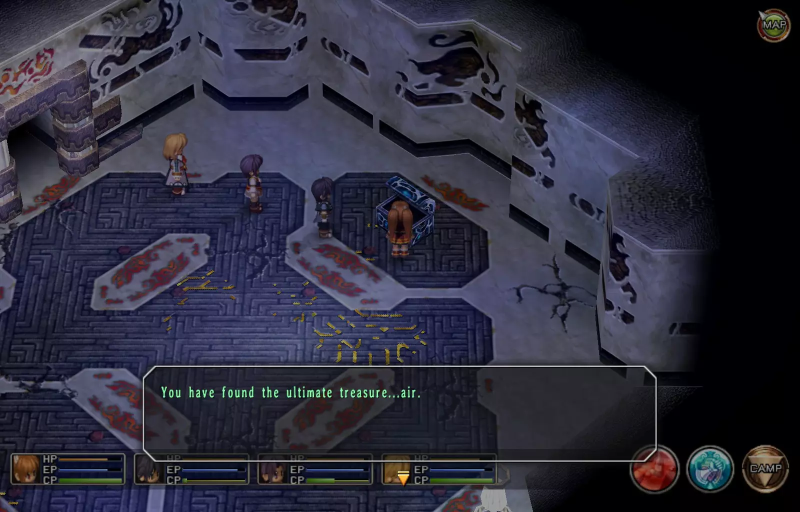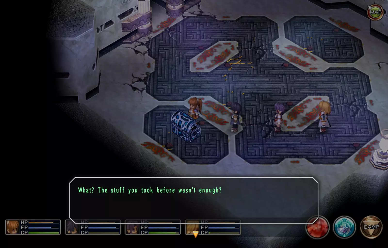 辉之环(1层) 我本打算制作一张地图,但后来发现自己的Photoshop技能实在太差。请使用Gamefaqs上的地图或Black Murasame63指南中的地图(我个人使用的就是这个)。不过我认为这两者可能都有一两个宝箱遗漏。 注意:大多数战斗宝箱都有一个警告:如果没有合适的配置,它们会极其困难。如果你是魔法型队伍(我个人使用的是奥利维尔和科洛丝),光子审判者会很麻烦,即便如此,它们的攻击依然很强力,其他一些敌人也是如此。我建议将约书亚的CP提升至100(可以通过对敌人频繁使用地狱之门/白色炼狱,每次施法可获得约30点CP,或者食用特制冰淇淋),并在出现暴击/50%概率时使用S技黑牙。这几乎能消灭所有敌人,除了大型敌人(光子审判者、M系列末日机甲等)。之后只需用战技或魔法(如果你装备了如铸造之类的回路,或者速度足够快)消灭这些大型敌人即可。 玛格斯塔(女性)(奥利维尔的终极武器)(125/163) 进入遗迹后,直接向东走,进入朝北的第一道门。