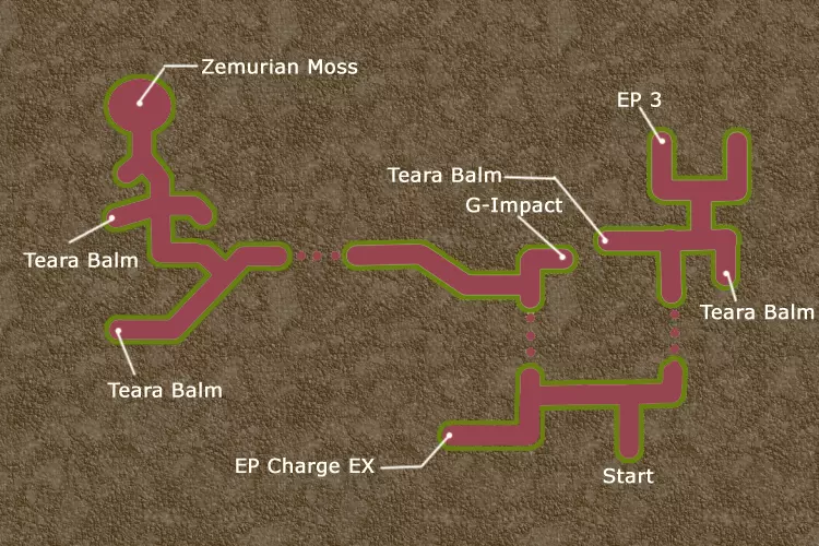 石灰岩洞穴[LimCa] 图片来源:Gamefaqs用户Black Murasame63。此图并非该地下城的精确布局,仅为大致示意图。