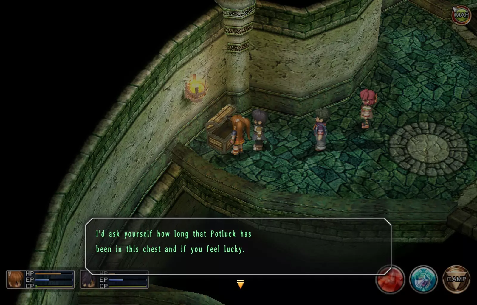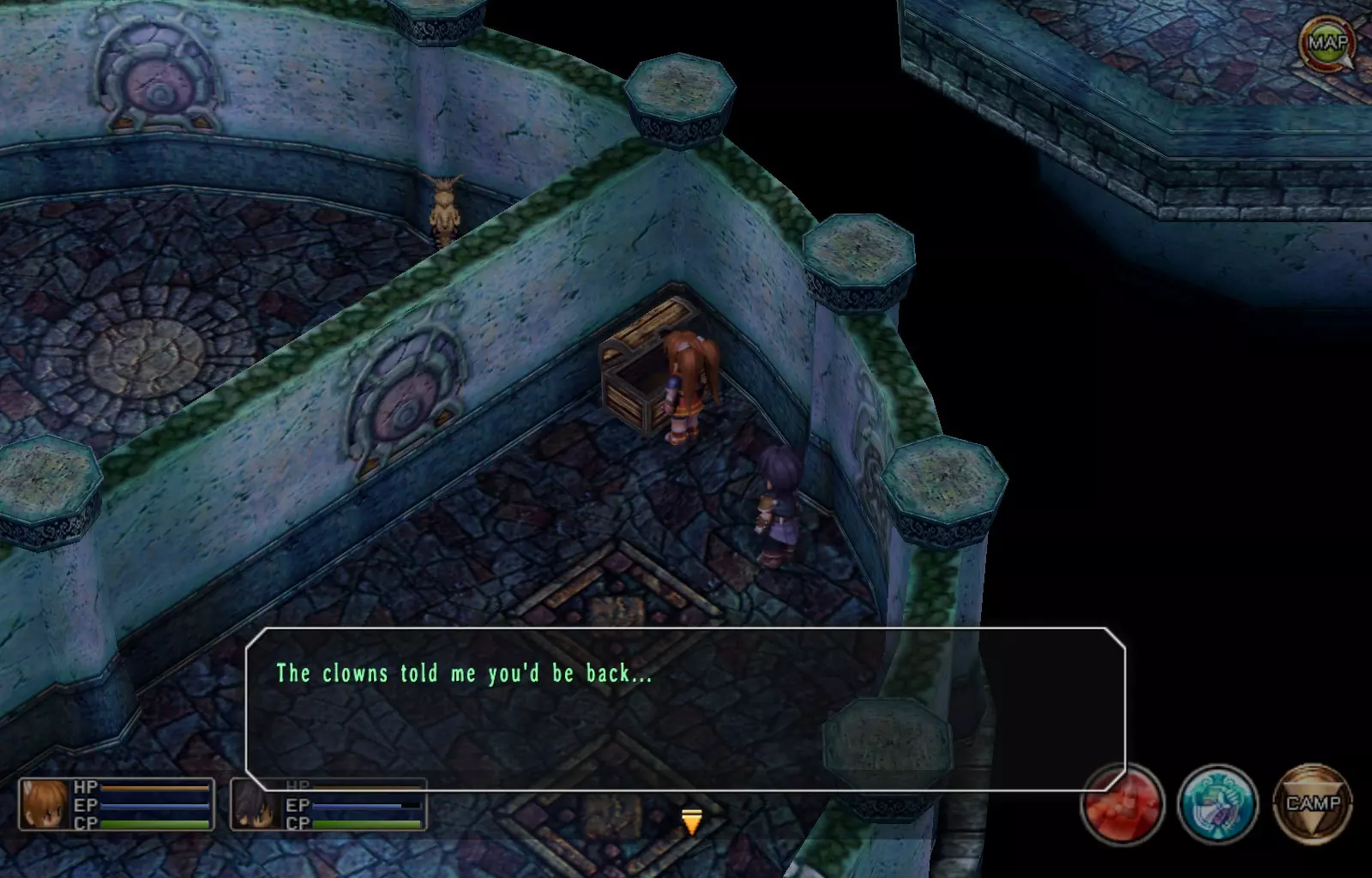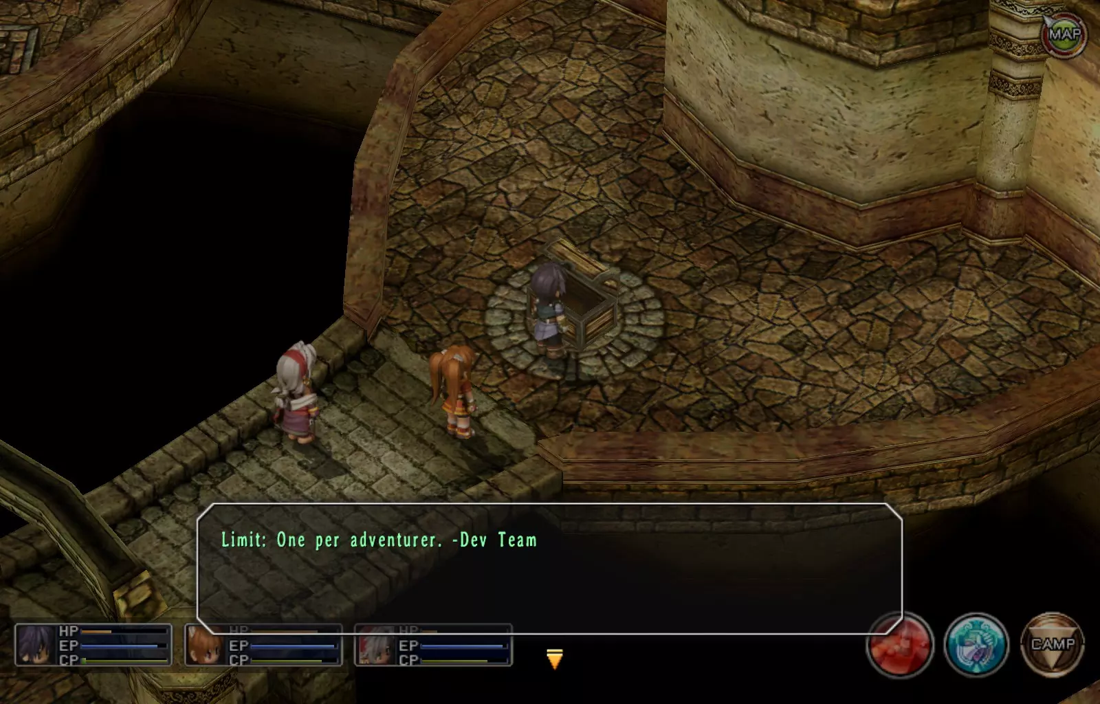 EP值充能(85/163) 第一层:进入地牢后,在前往圆形平台之前,将视角旋转180度,入口两侧各有2个宝箱。
