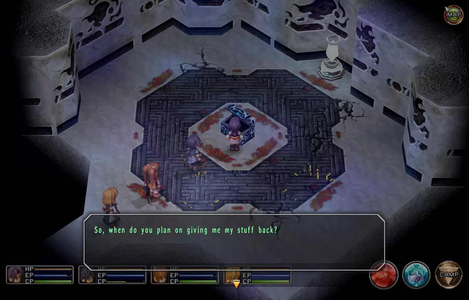 EP填充EX(89/163) 三楼:在二楼,带有心灵3导力器的圆形平台处选择西侧路线。