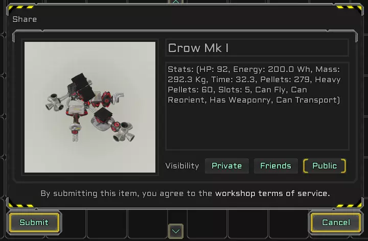 输入单位信息并选择其创意工坊可见性。 私人 - 仅您可见; 好友 - 您和您的好友可见; 公开 - 所有浏览创意工坊的用户可见。