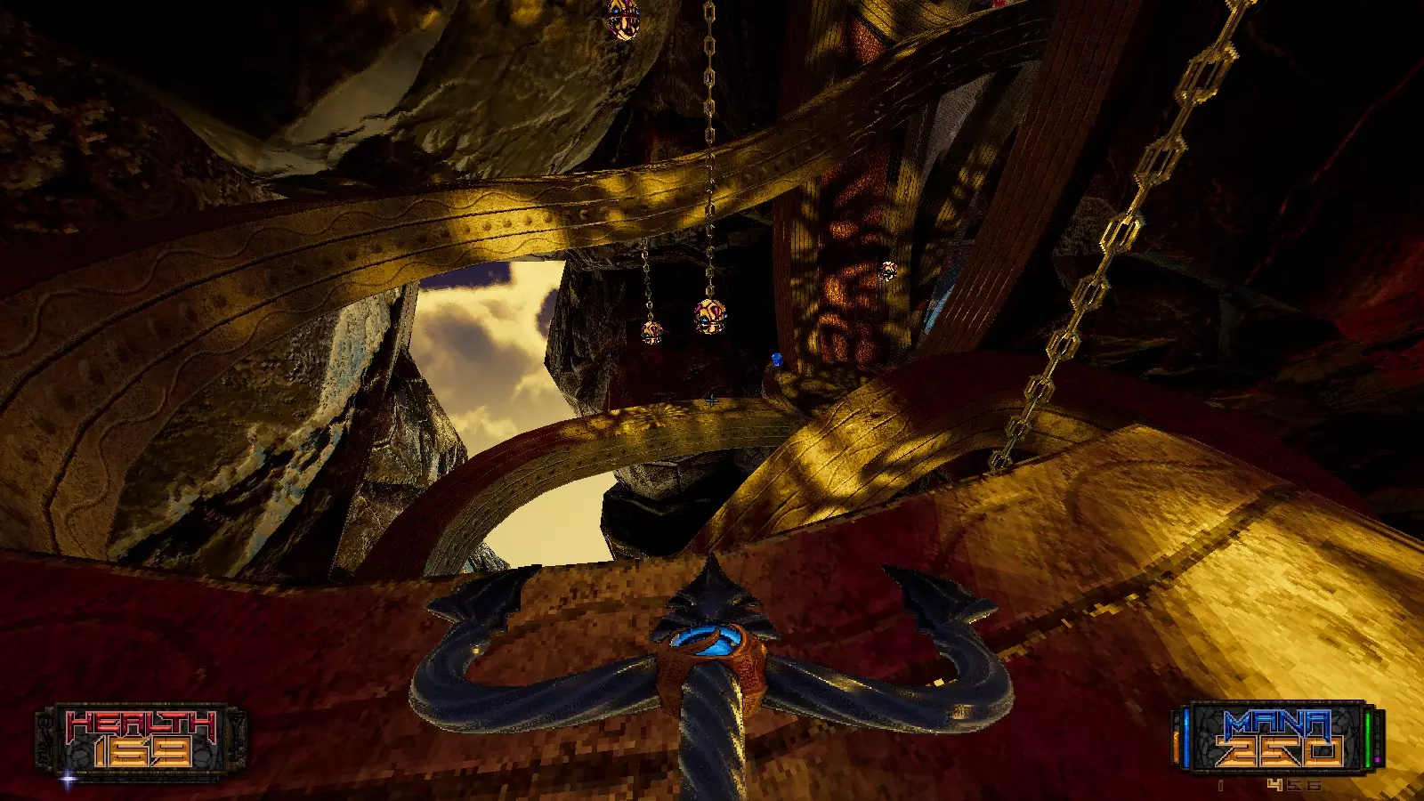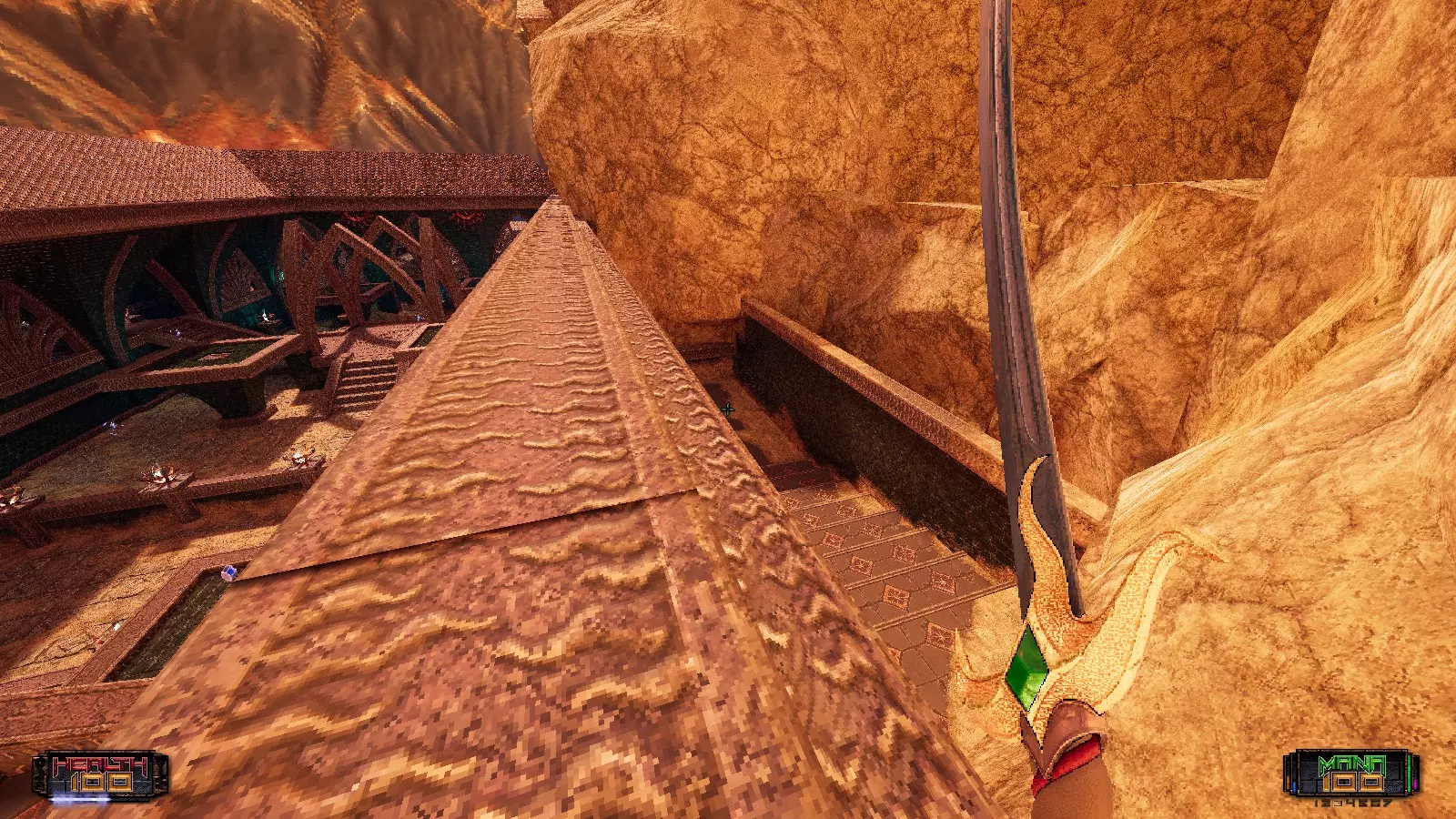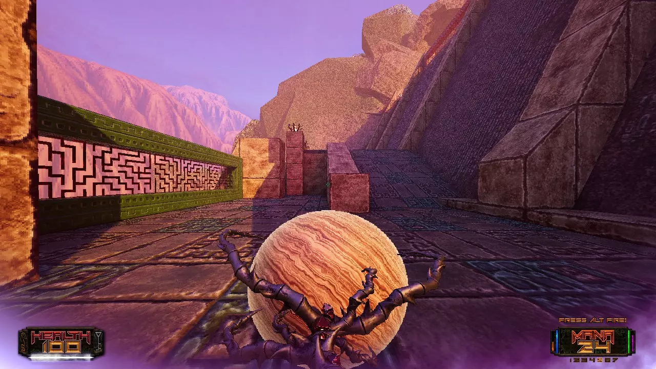 秘密6 从金钥匙门旁边跳上壁架,沿着它越过楼梯,你猜对了,这就是E5M3的最终秘密。我们能否静默一分钟,欣赏一下这张地图有多棒;E5M1或许会因其视觉效果被铭记,但真正的精华是这张地图【脱帽致敬】