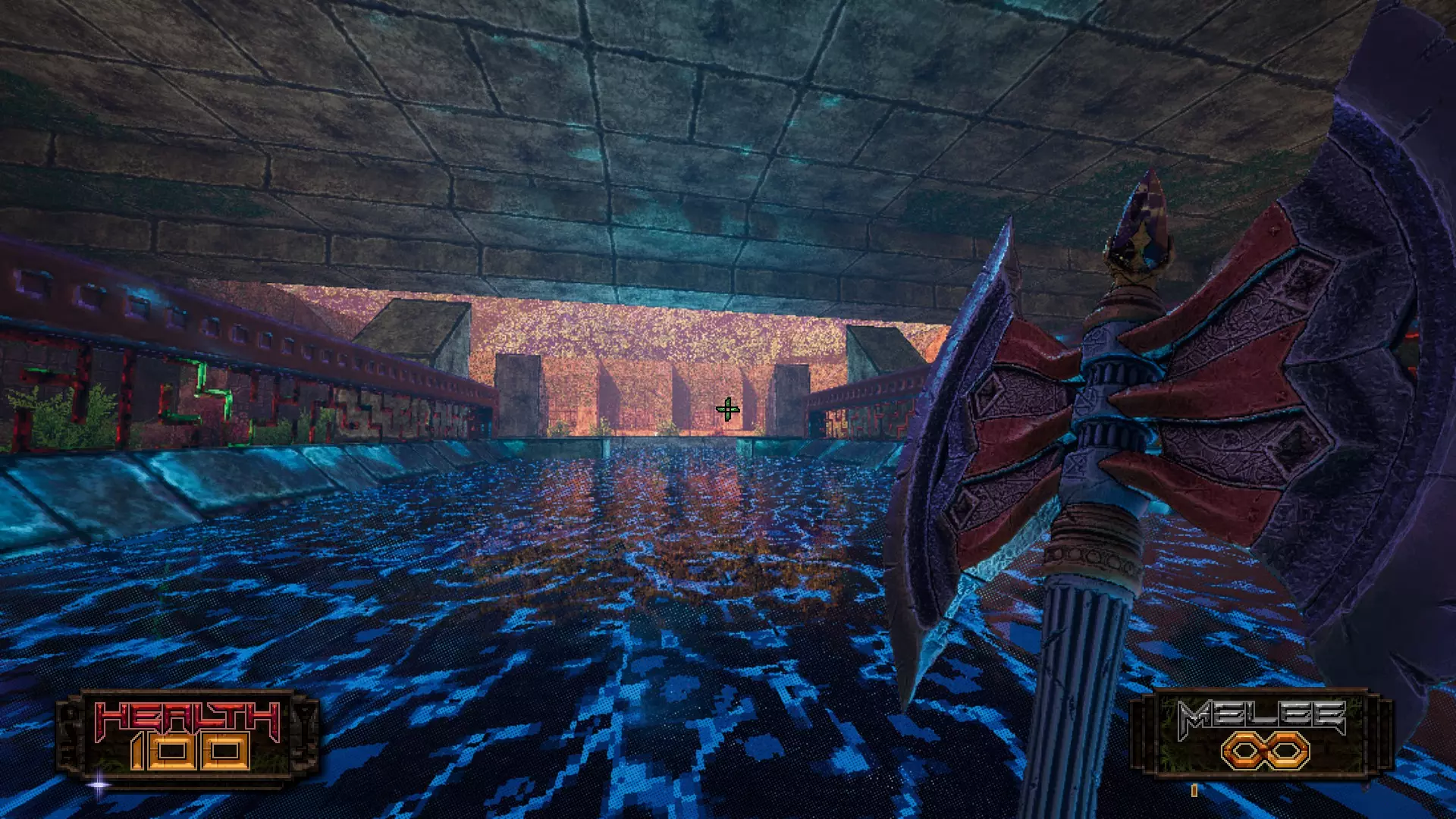 地图末尾附近的水面上方有一个需要射击的开关。它会在稍远的地方打开一条秘密通道。教科书式的秘密。如果你自己没发现这个,我就要用这本“教科书”敲你了。