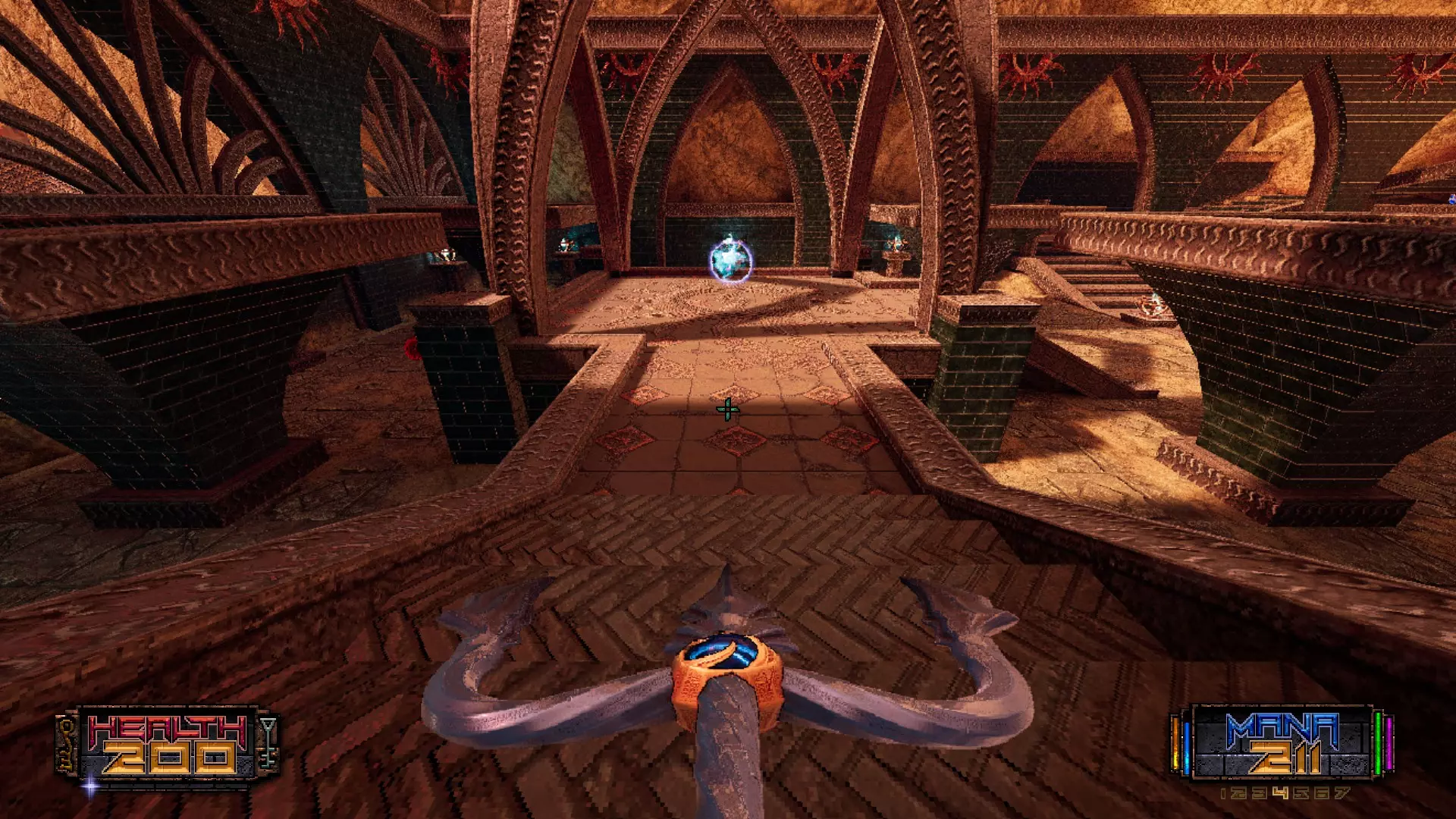 秘密6 有趣的方法:这个秘密很有意思。在藏有秘密的同一个房间里,有一个隐藏的星球发射器——这不算秘密,所以我不必告诉你它在哪里,啦啦啦。使用武器将自己发射到墙上的洞口。超级生命恢复会立即治愈你的伤势。 正确的方法:我从尊敬的比扎罗牧师那里得知,你可以把带链条的球形灯当作垫脚石。最后一个灯会升起,带你找到秘密。干得好!
