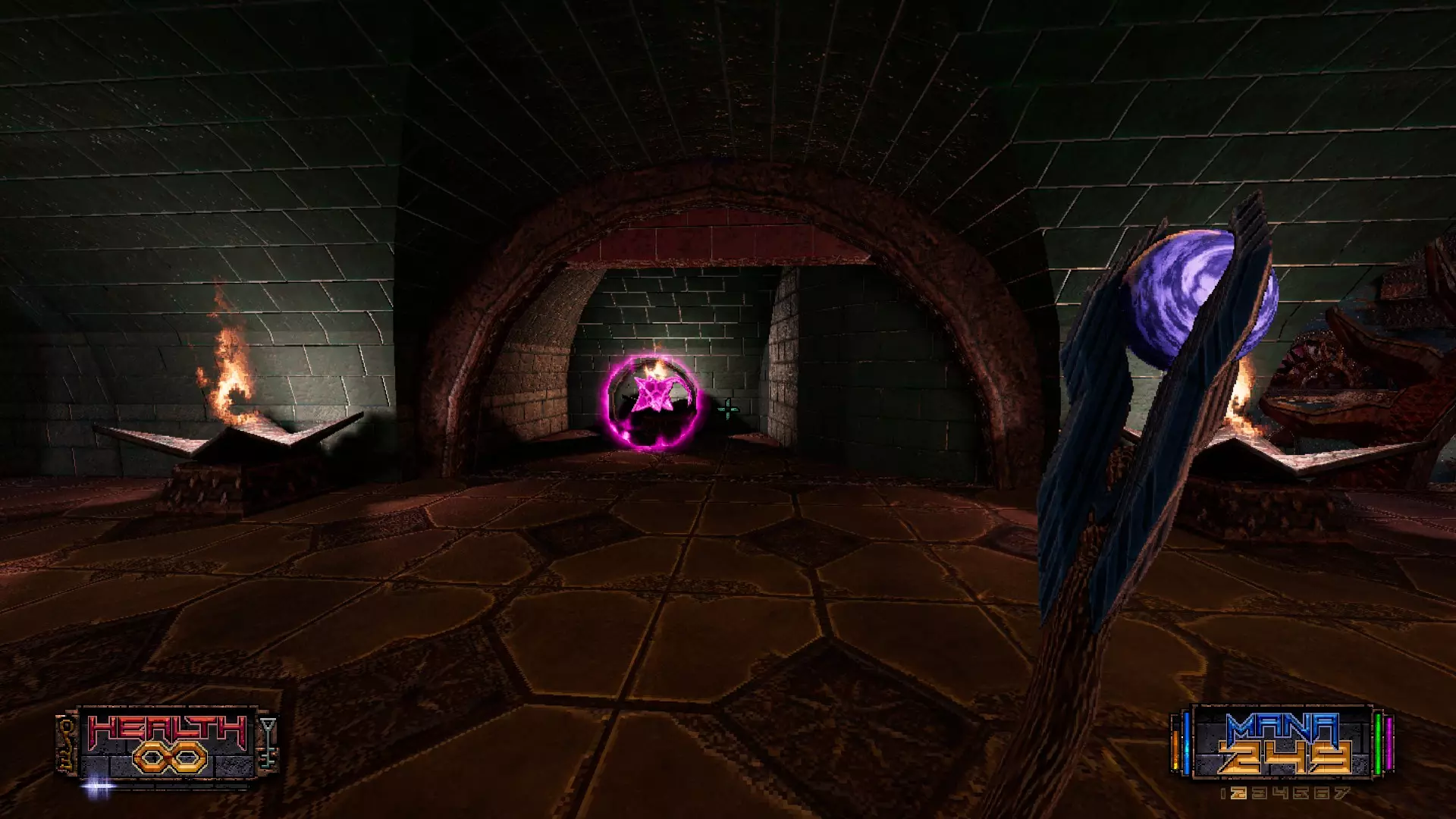 跳到两侧有火把且带有紫色魔力的平台上。